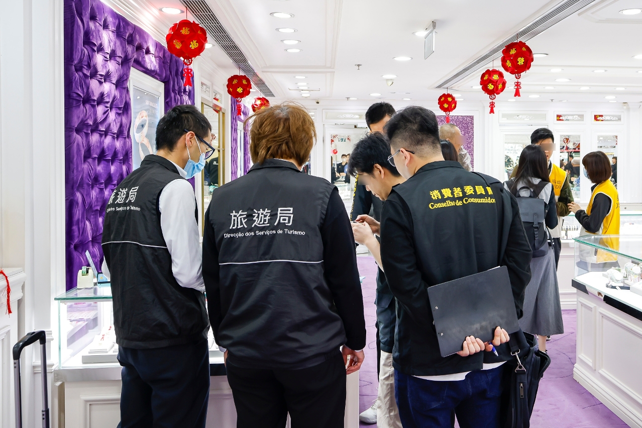 旅游局除了恒常在各出入境口岸、旅游景点和购物点进行巡查监察外,因应春节长假期将至,联合相关部门执行巡查工作,包括与海关、消费者委员会(下称“消委会”)和经济及科技发展局加强巡查购物点,维持旅游零售行业秩序;联同海关重点打击涉及旅行团的水货活动;与治安警察局联合巡查,打击非法提供住宿行为。