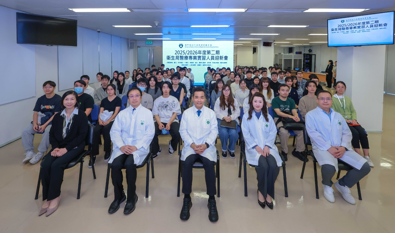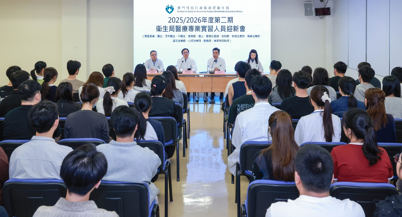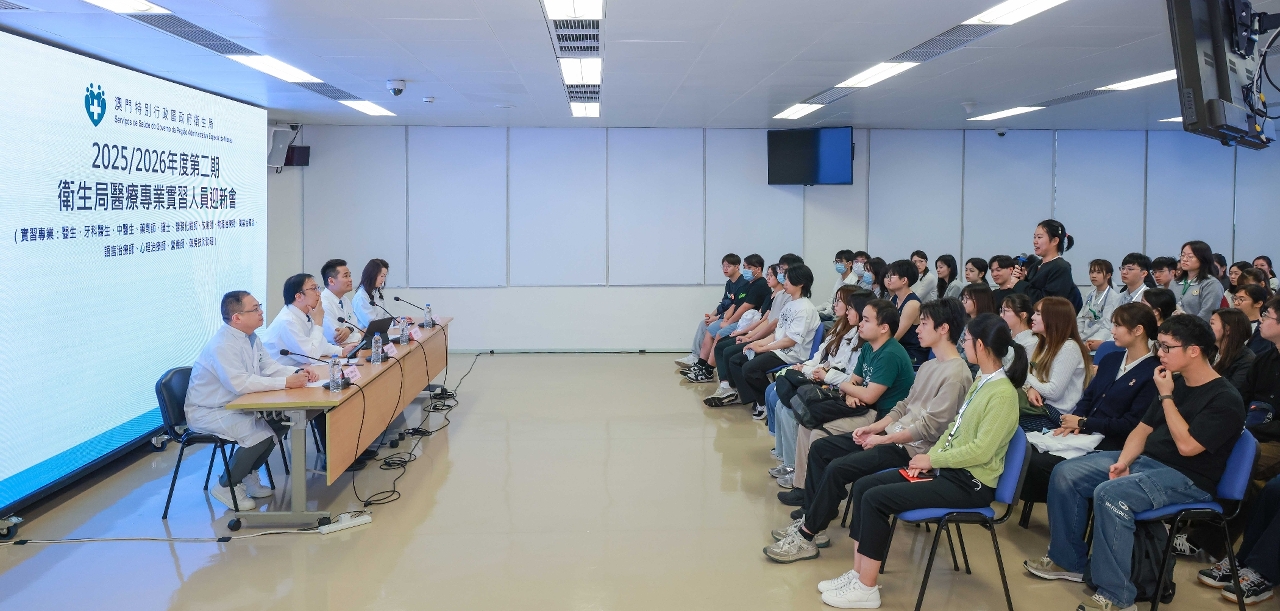 卫生局持续完善本澳医疗人才队伍建设,通过系统性实习培训提升医疗人员的临床实践技能与专业素养。新一届(第2025/2026年度第二期)13个类别共106名实习人员于3月1日起在卫生局实习。卫生局今(2)日为该批医疗专业实习人员举办迎新会,由卫生局罗奕龙局长主持,仁伯爵综合医院曾潭飞代院长、社区医疗卫生厅王燕厅长、仁伯爵综合医院黄洁薇护士总监及蔡念代医务主任,出席了迎新会,听取实习人员的期望及意见并进行了互动交流。