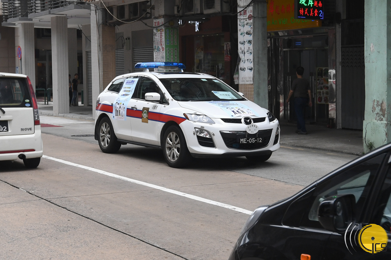 “水晶魚”演習-警車在下環區進行廣播,呼籲居民撤離。
