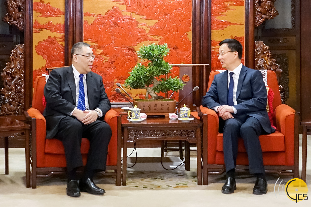 行政長官崔世安在北京向國務院副總理韓正匯報澳門特別行政區政府和社會各界對粵港澳大灣區發展規劃有關問題的意見和建議。