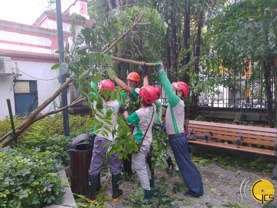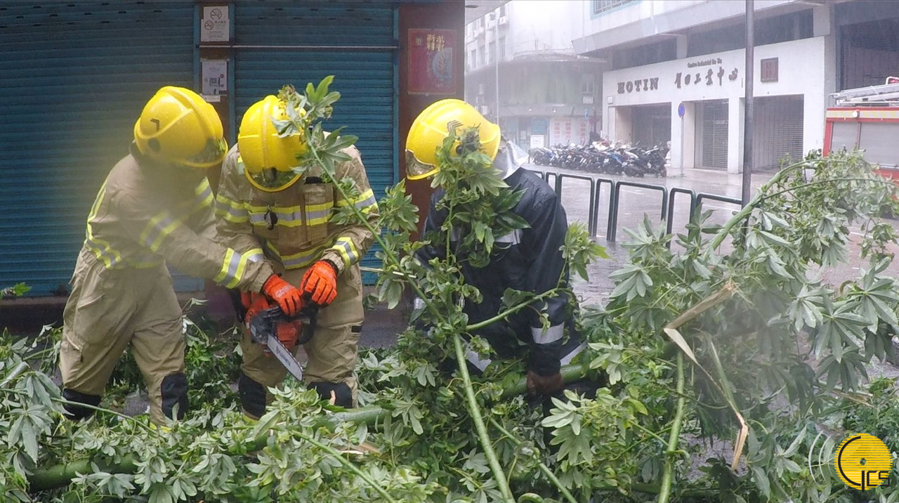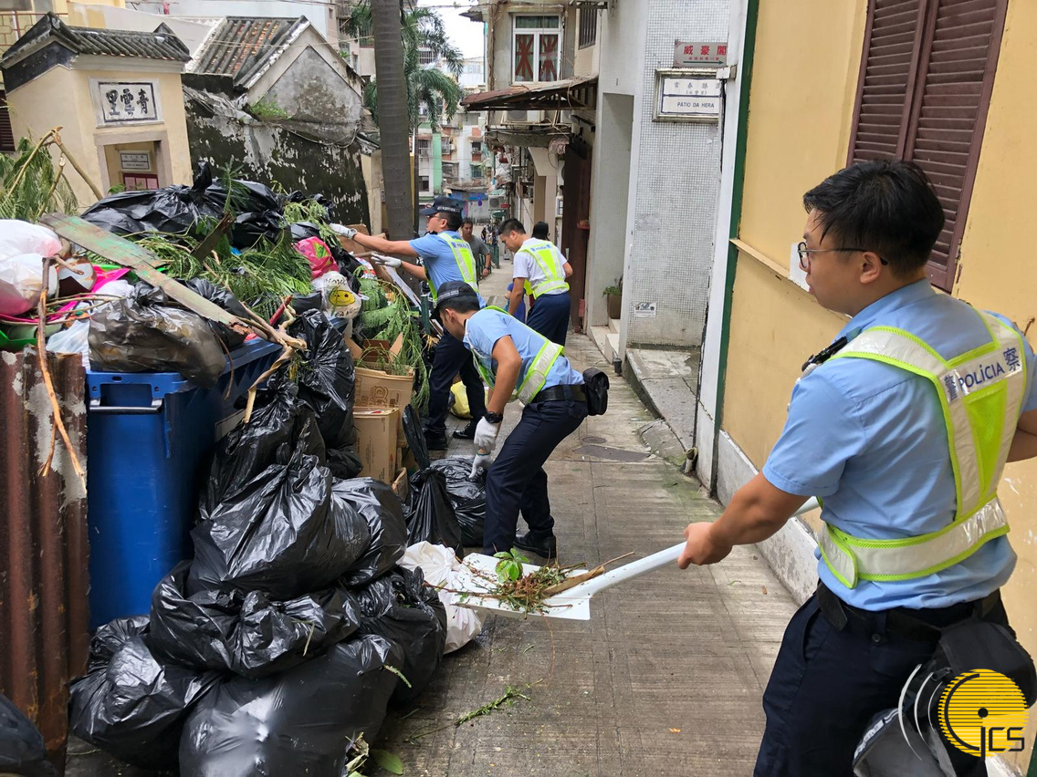 保安部隊、民政總署及相關部門人員持續清理街道雜物,以期儘快恢復市容。