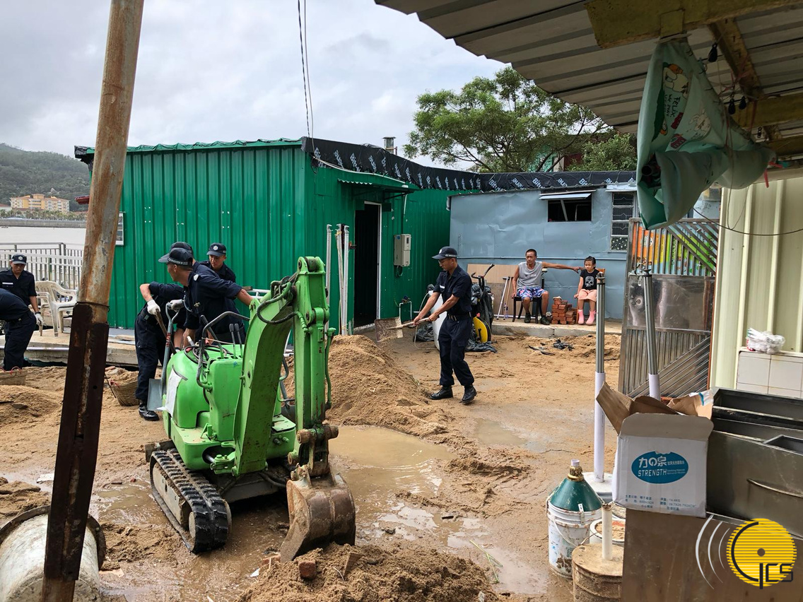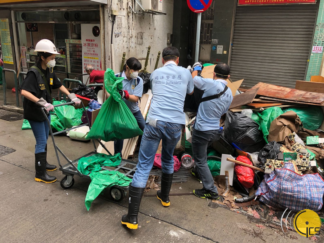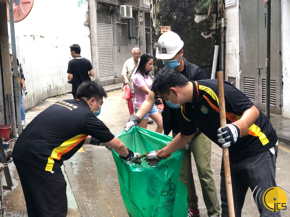 保安部隊及部門人員與街坊同心協力,持續清理街道雜物,期望儘快恢復市容。