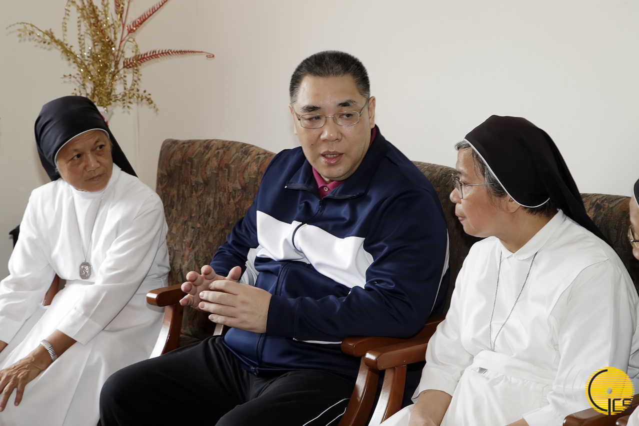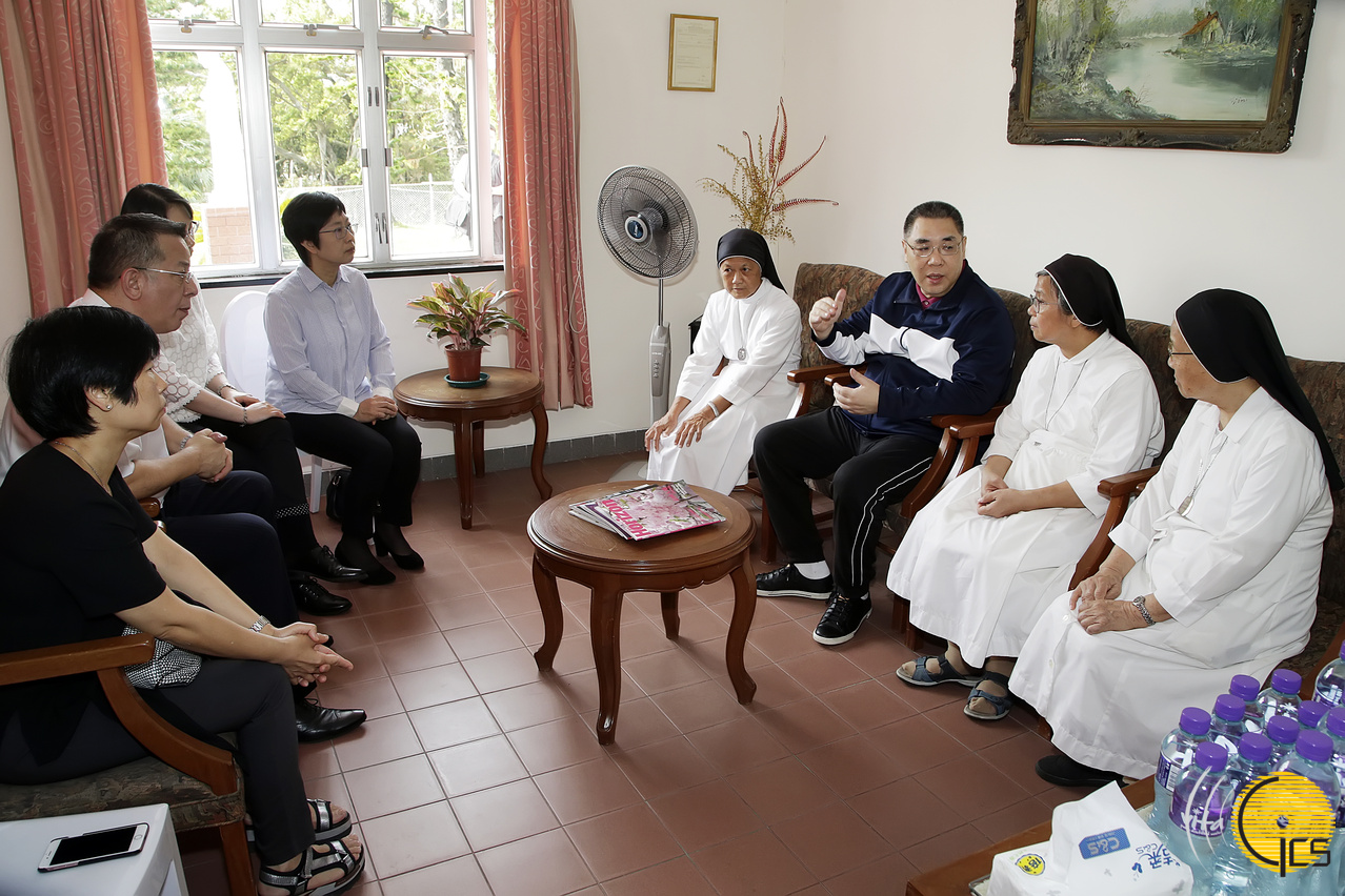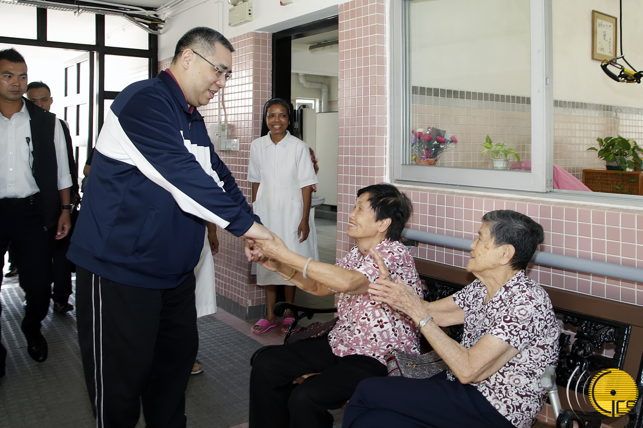 行政長官崔世安到路環瑪大肋納安老院探望長者,與長者們親切交談。