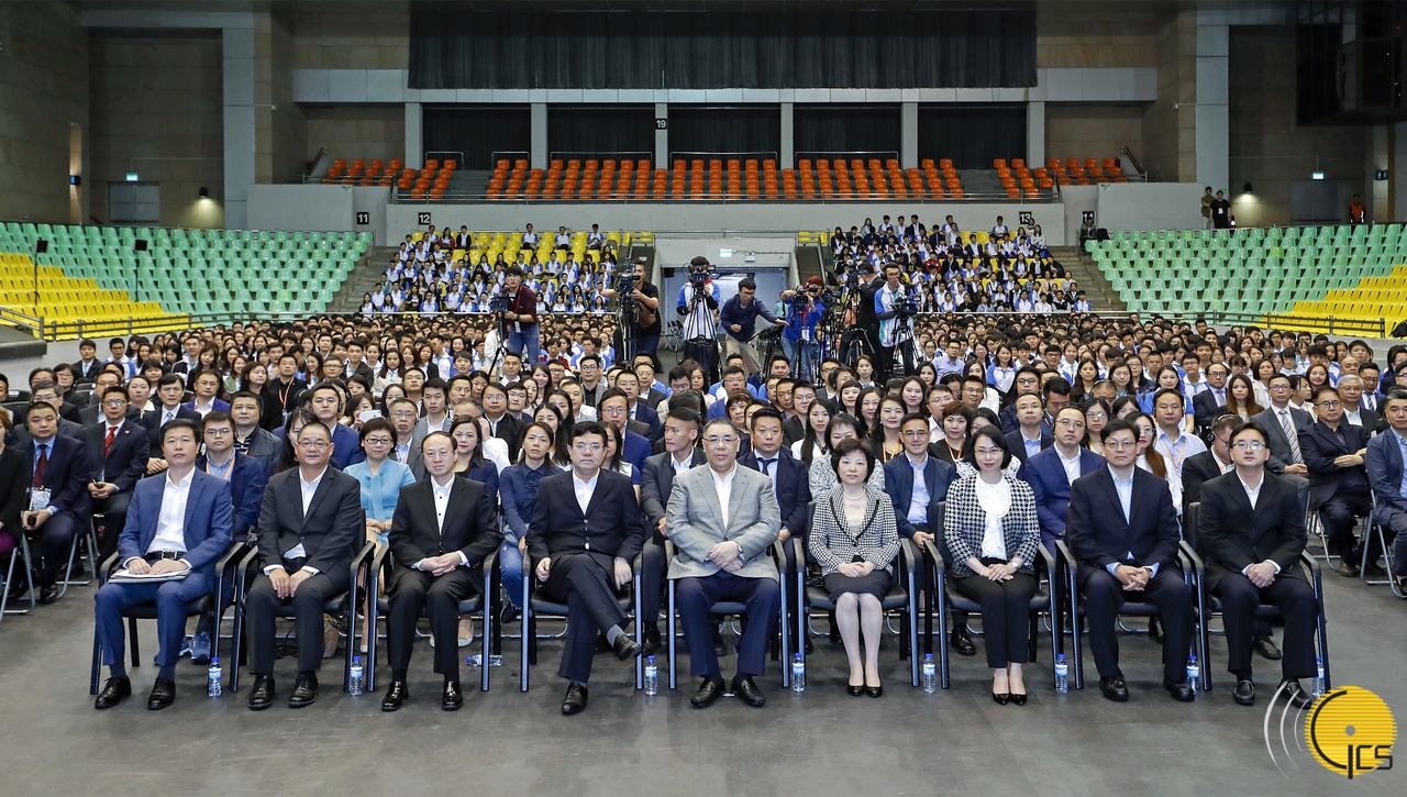 行政長官崔世安等主禮嘉賓在慶祝澳門回歸20周年“千人匯”匯員大會暨與特首面對面活動上與全體匯員代表大合影