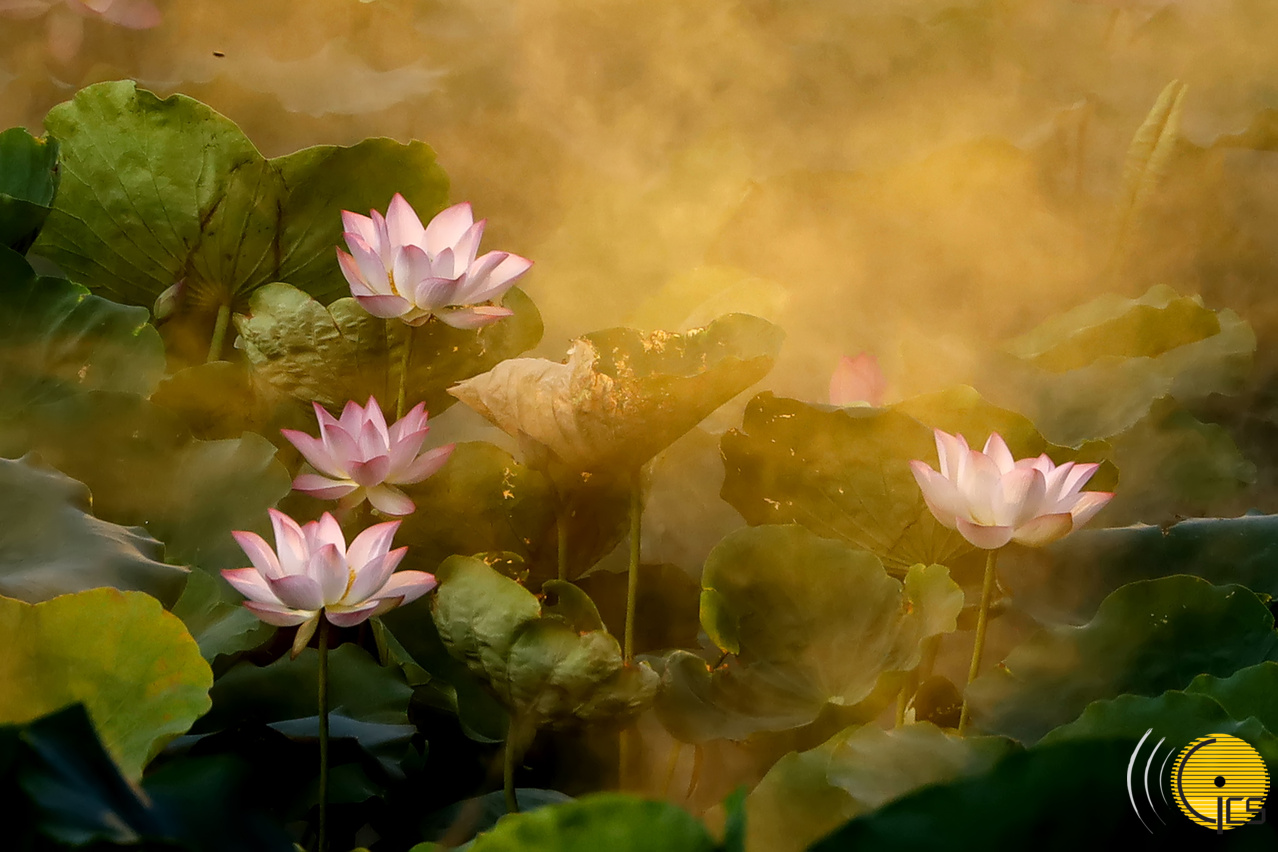煙霧裝置令池塘仙氣縈繞,帶來更佳的賞荷景致。