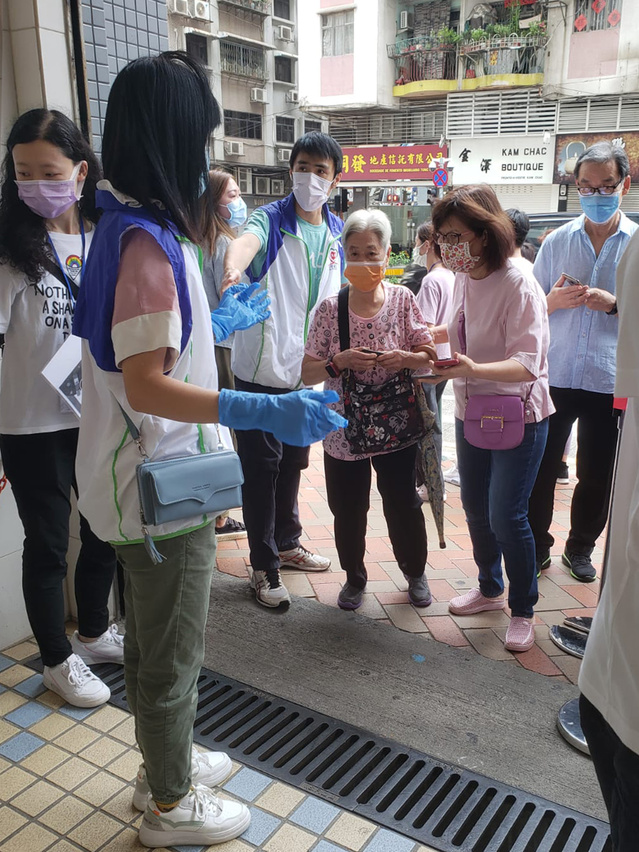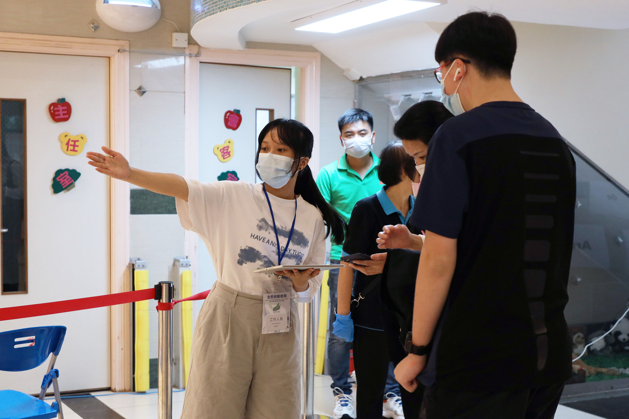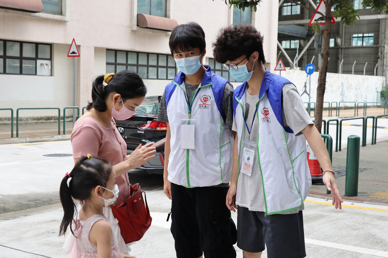 青年義工為市民指引檢測路線 (勞校中學附屬幼稚園)