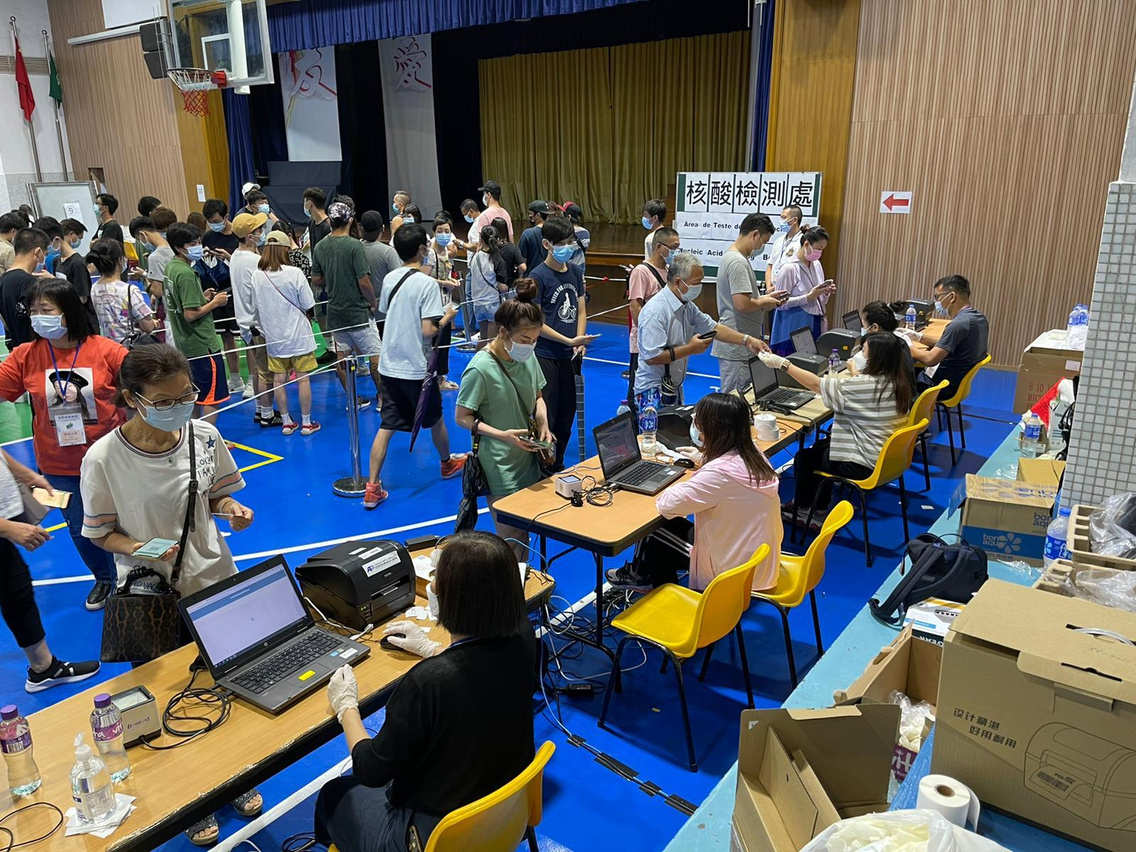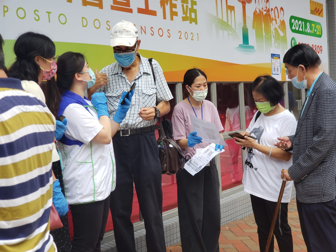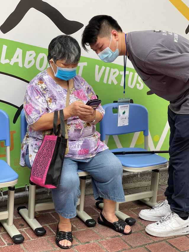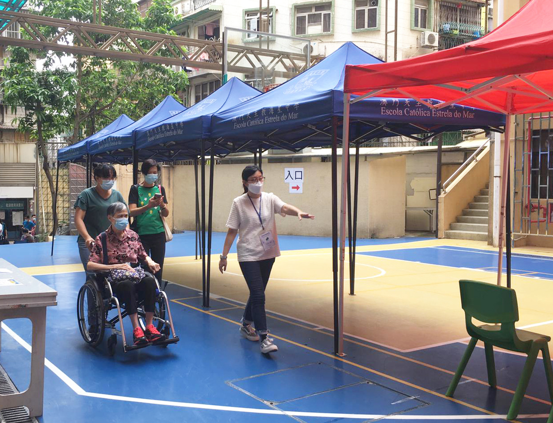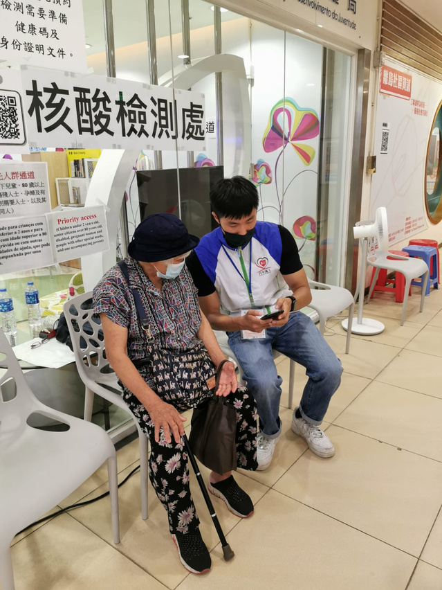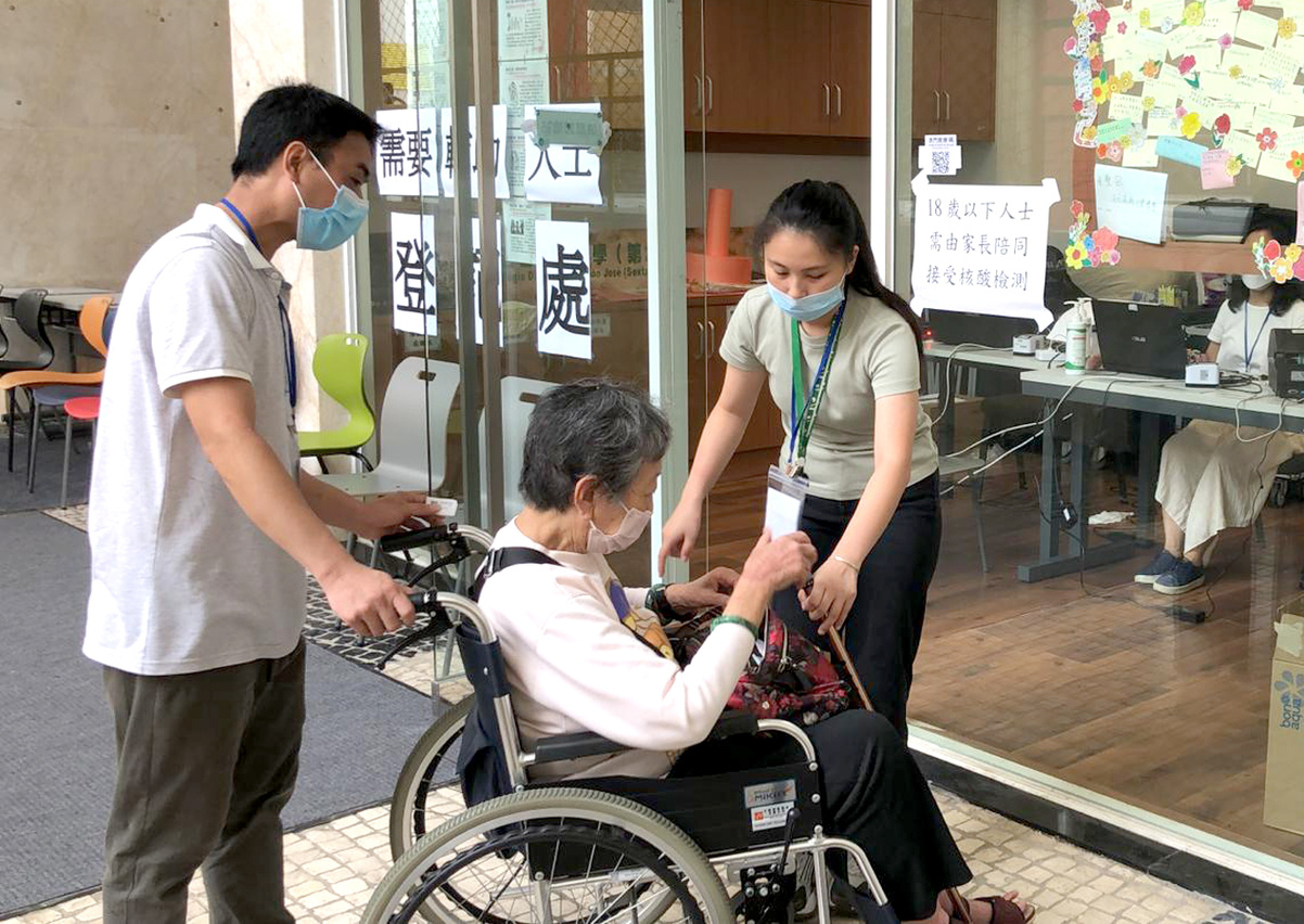 工作人員協助安排長者優先接受檢測 (澳門大學)