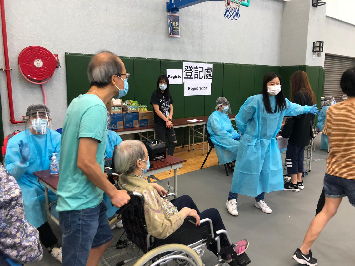 工作人員協助安排長者優先接受檢測 (鮑思高粵華小學)