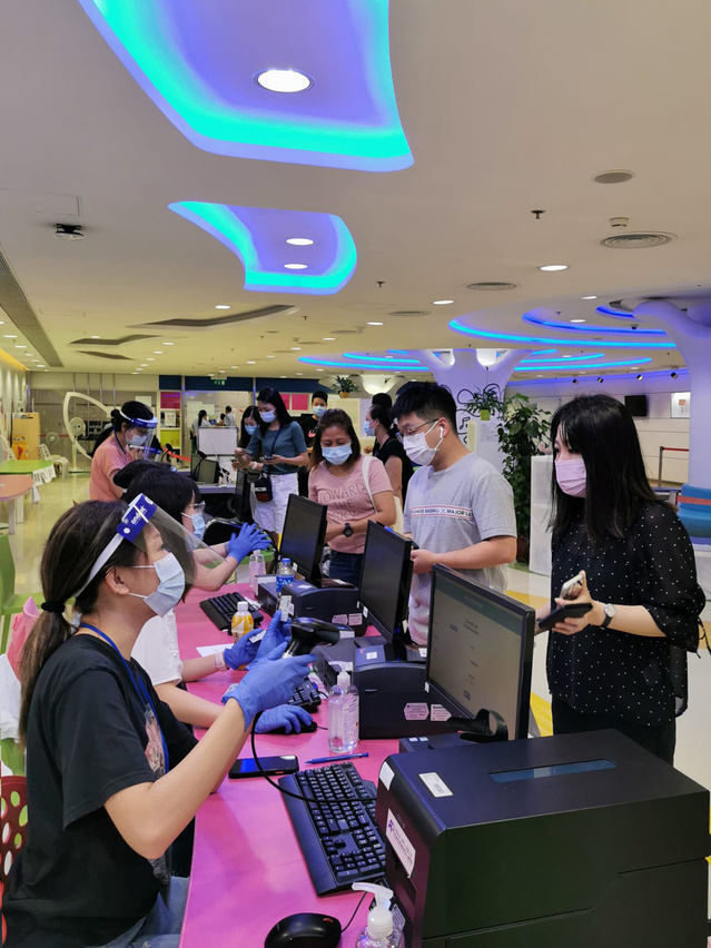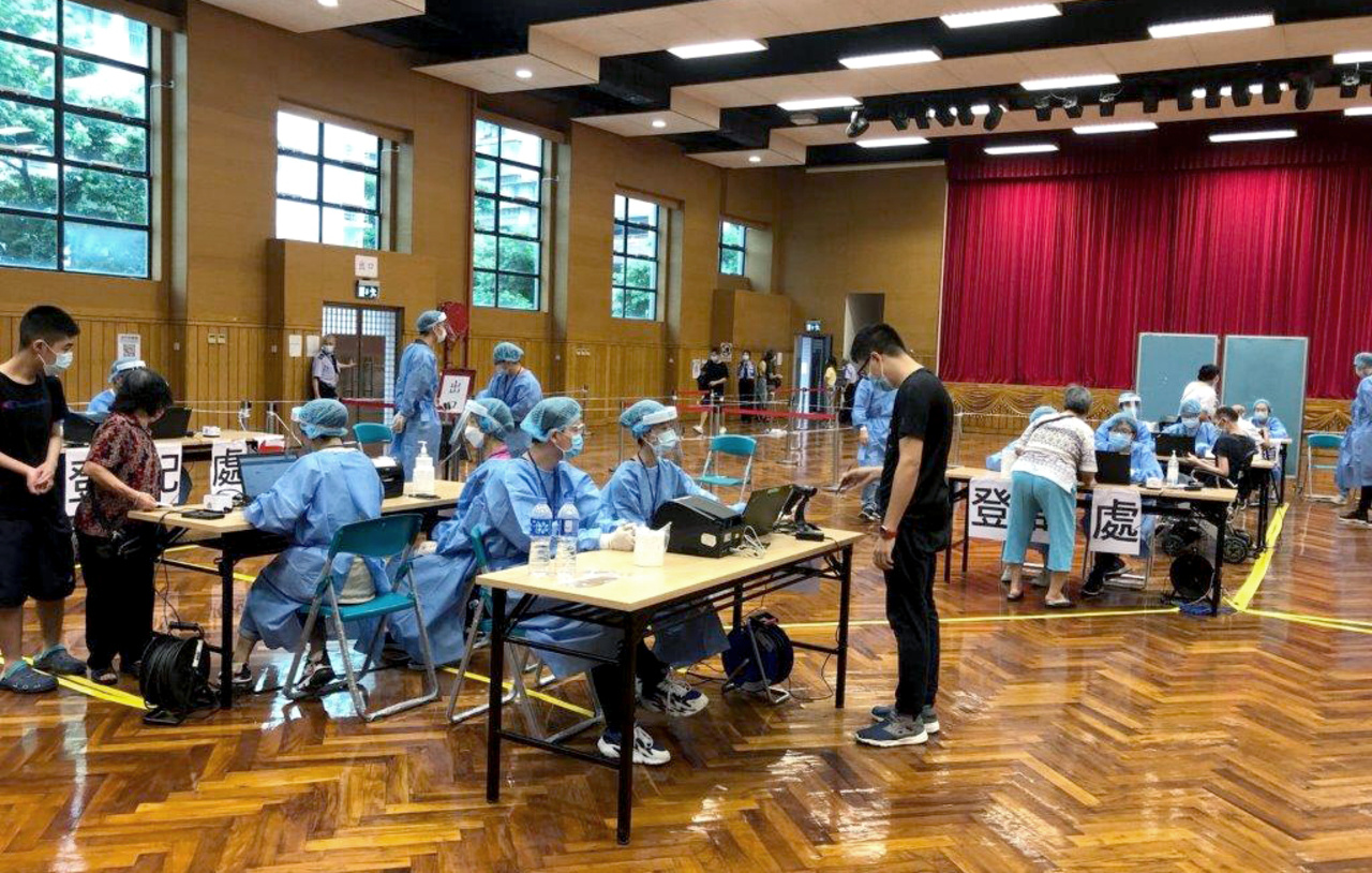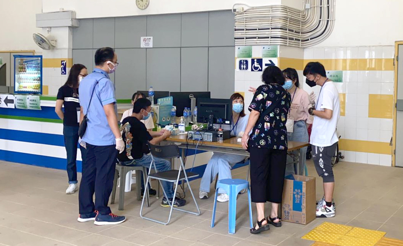 設置服務櫃台為市民完成網上預約(中葡職業技術學校體育館)
