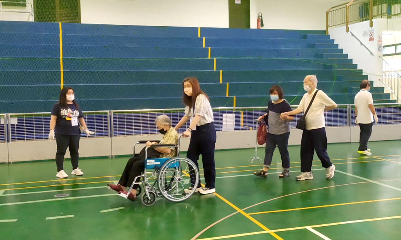 工作人員協助安排長者優先接受檢測 (海星中學)