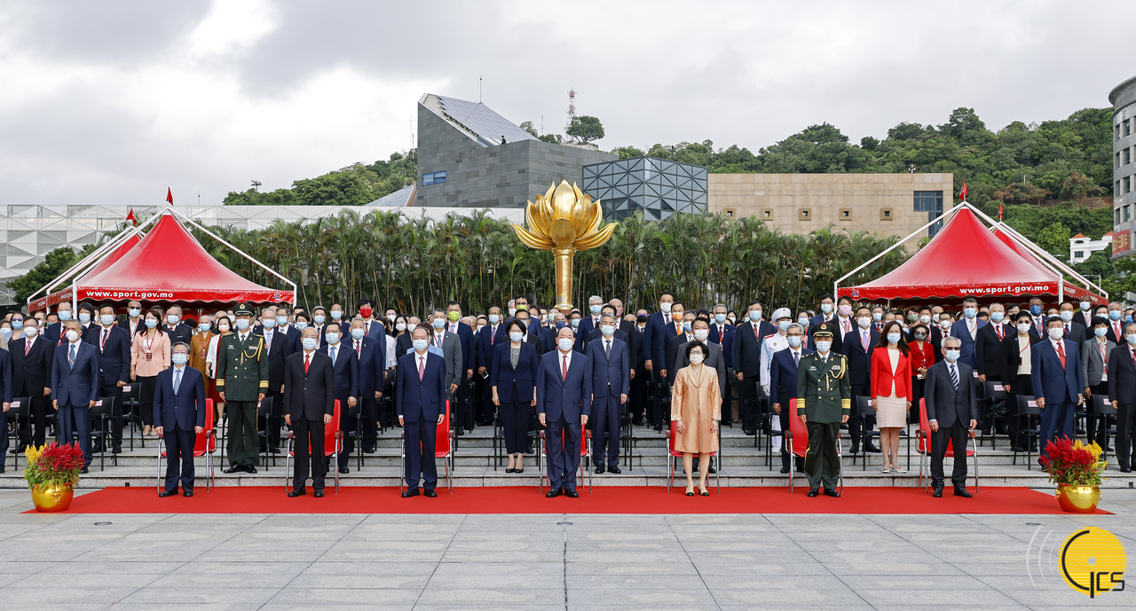 行政長官賀一誠、中央駐澳官員、解放軍駐澳部隊軍官、特區立法和司法機關負責人、政府主要官員及各界人士出席慶祝中華人民共和國成立73周年升旗儀式。