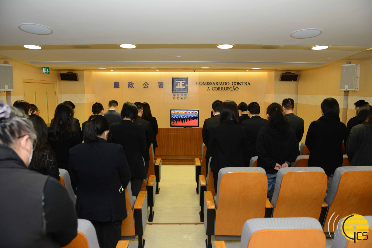 廉政公署人員收看前國家主席江澤民追悼大會現場直播,在追悼大會默哀時,全體人員默哀三分鐘。