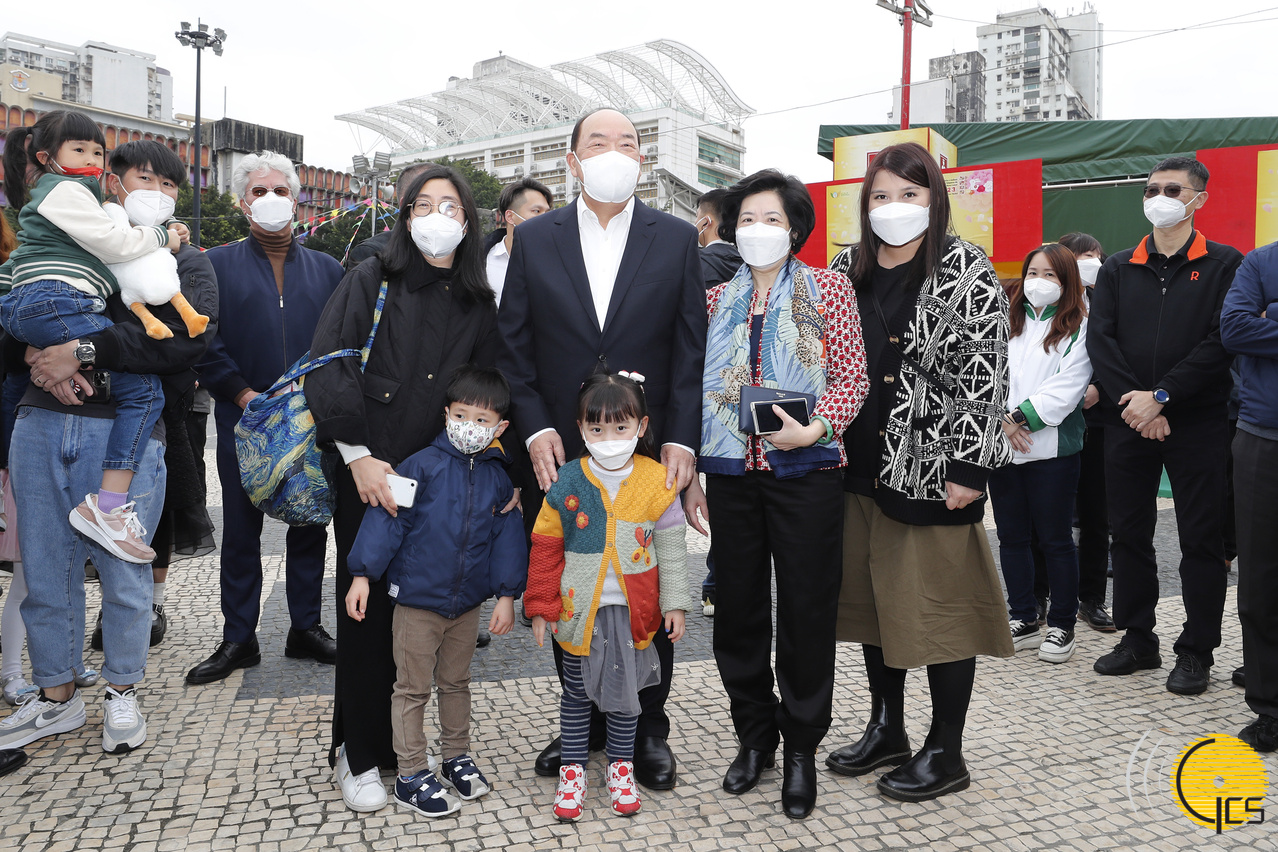 行政長官賀一誠伉儷參觀年宵市場期間與小朋友及其家長合影