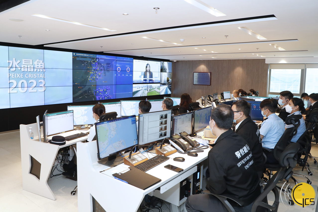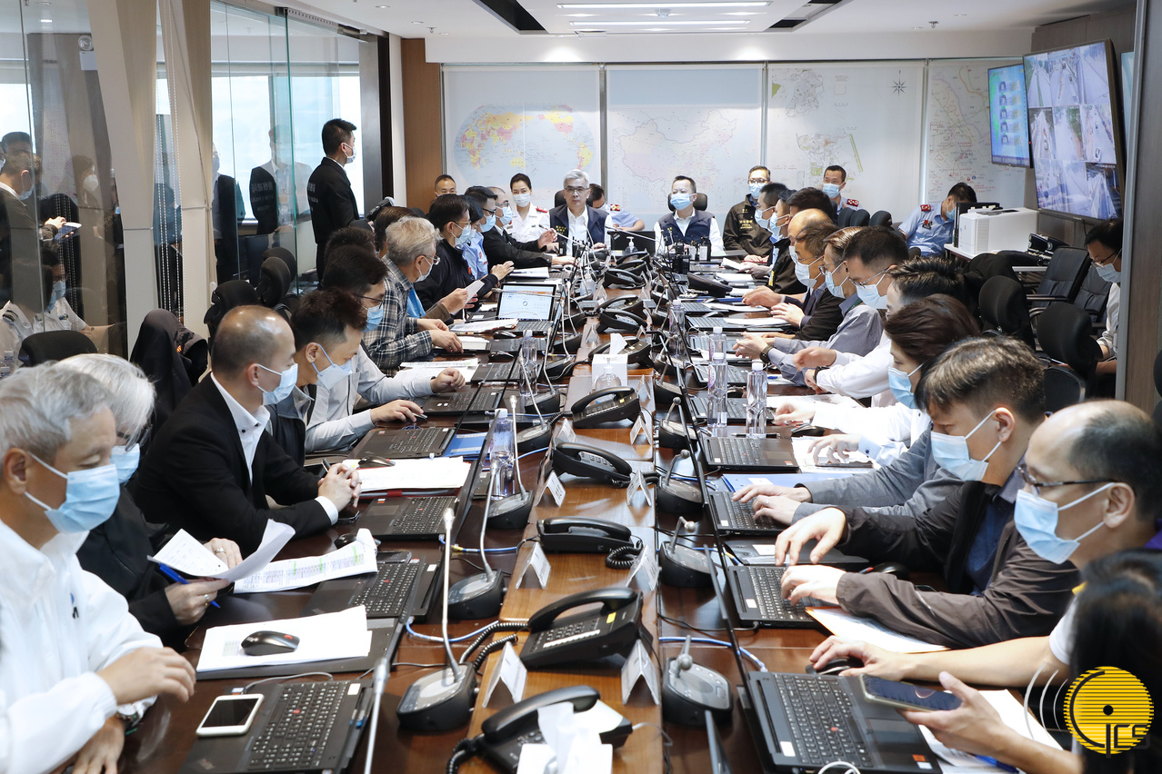 “水晶魚2023”颱風演習-演習開始,民防行動中心啟動全面運作模式,就應對颱風進行工作部署。