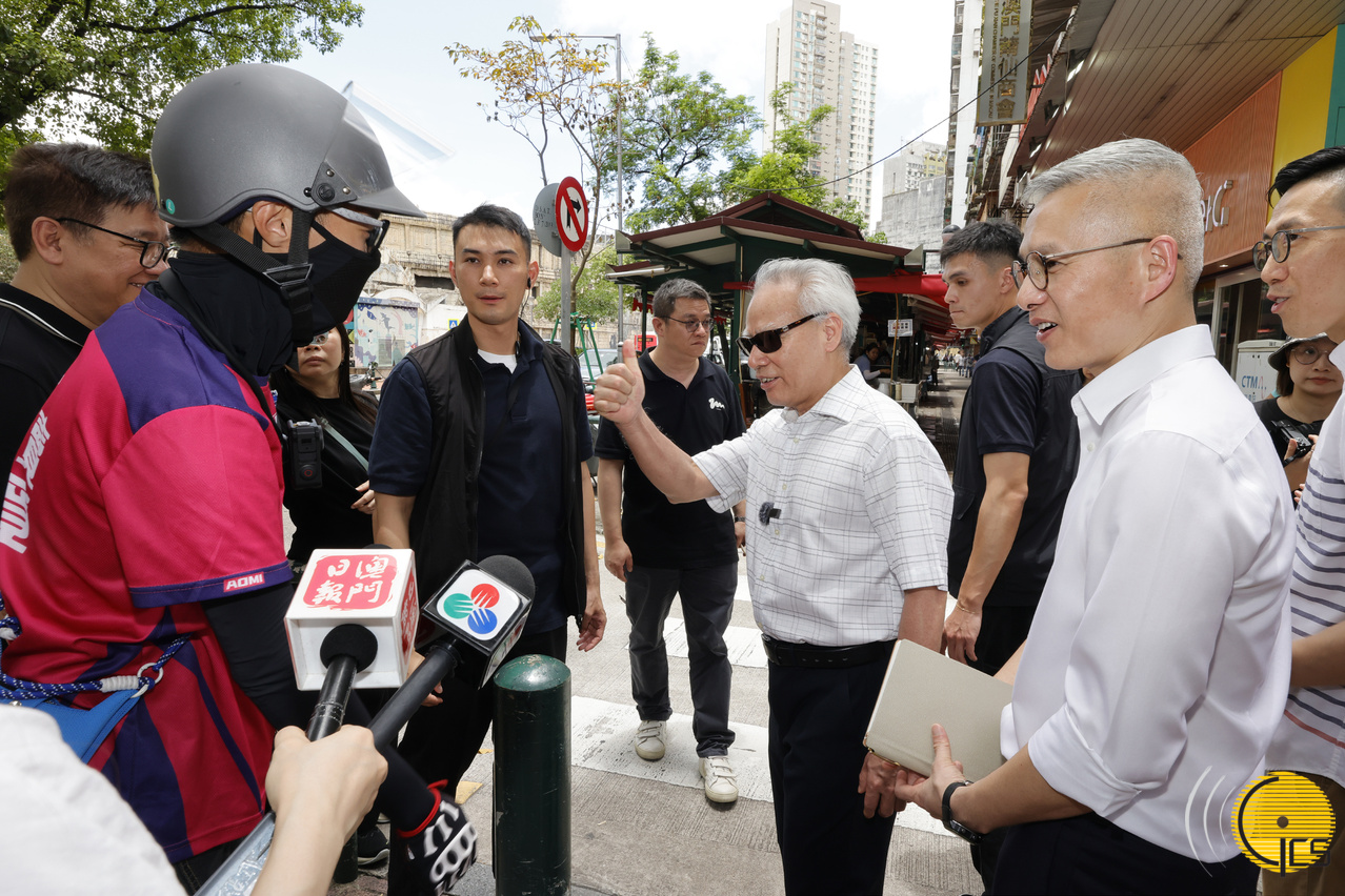 行政長官岑浩輝完成落區及視察行程後,接受傳媒訪問。