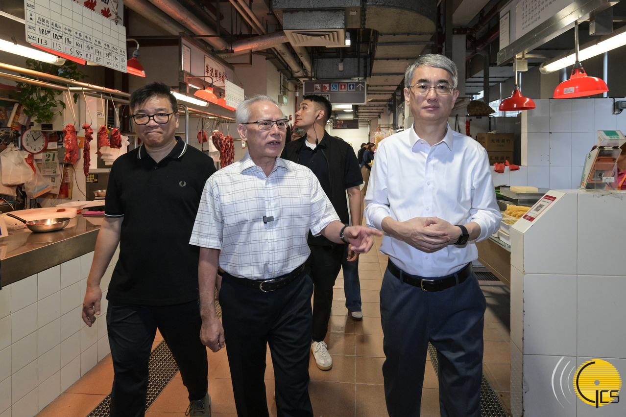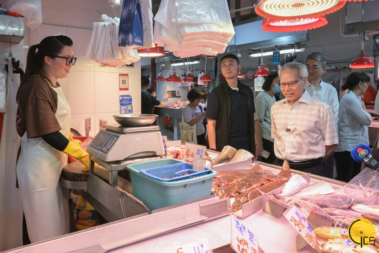 行政長官岑浩輝到沙梨頭街市市政綜合大樓視察街市的環境、設施及營運狀況。