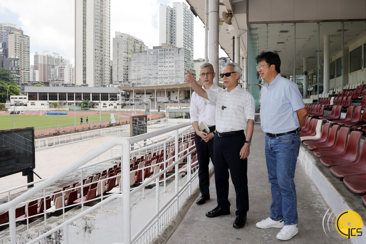 行政長官岑浩輝視察原逸園狗場及蓮峰體育中心地段,聽取有關重整優化規劃的介紹。