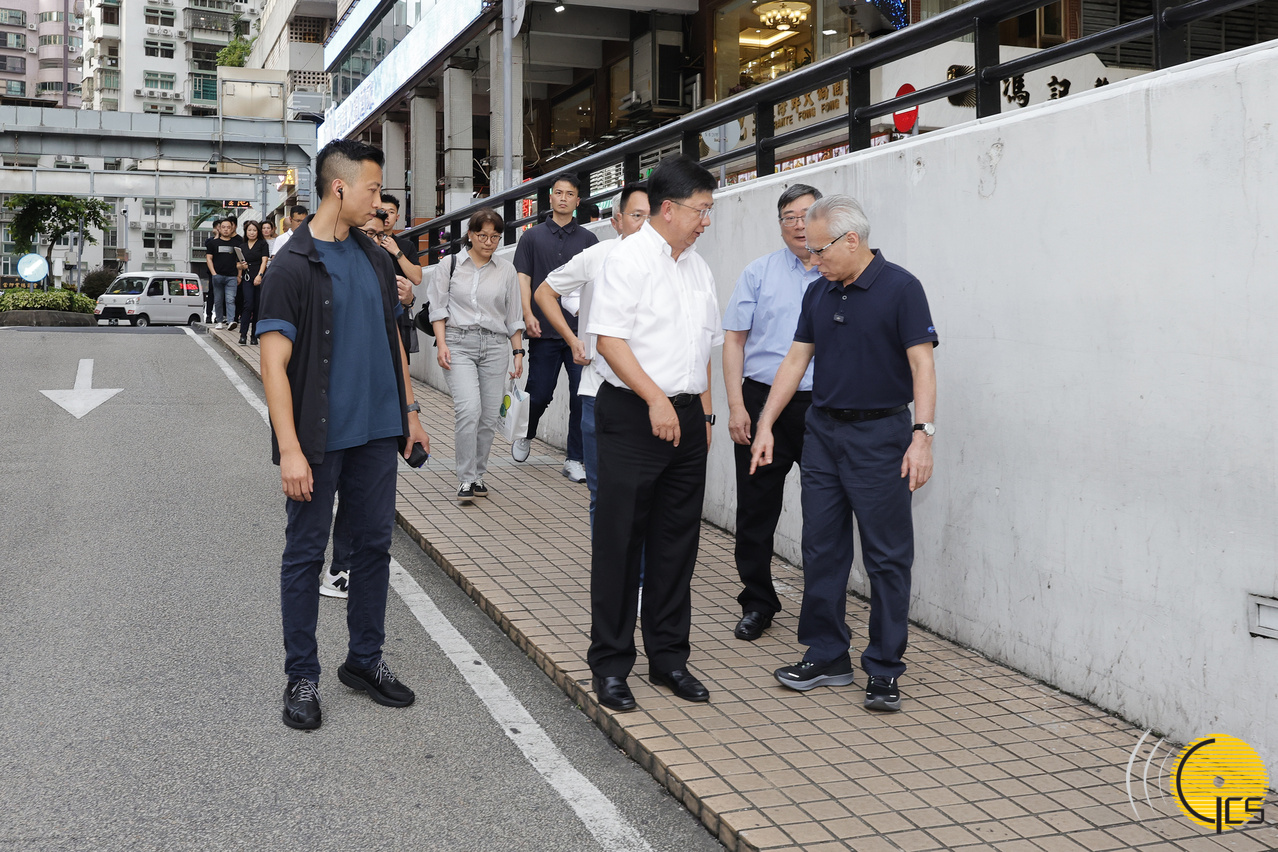 行政長官岑浩輝前往皇朝區,了解該區連接新口岸的步行路線及未來優化規劃。