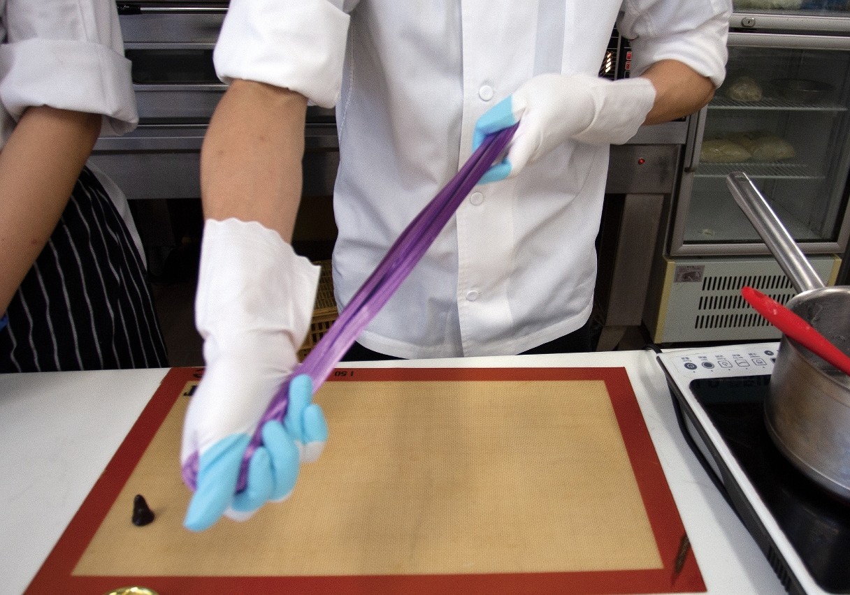 劉擇祥說,工作幾年後,終有機會到馬來西亞、香港及法國,跟不同的拉糖老師深造。「2015年,我帶領學生出國參加世界職業技能競賽,於是有機會到其他國家受訓。當時,我們到法國跟一位於業界有『糖王』稱號的老師學習,在為期6天的密集式特訓中,我們共製作了4個小型拉糖作品。由於時間緊迫,我們每天用12小時練習,學到很多高難度的技巧,獲益良多。」劉擇祥說,由於老師的示範動作很快,很多時還來不及完成手中的作品,便要跟着老師練習其他技藝,過程相當緊湊。
