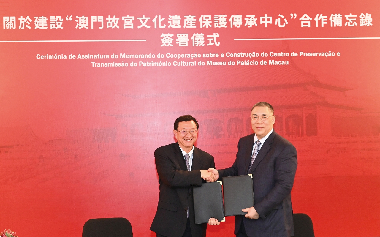 為鞏固和深化20年來,內地與澳門在文化遺產保護傳承領域的合作成果,故宮博物院與澳門文化局宣佈合作建設「澳門故宮文化遺產保護傳承中心」,繼續加強兩地文化領域的合作深度和廣度,共同探索創新合作模式,實現互惠互補的戰略目標。同時深化澳門作為「世界旅遊休閒中心」內涵,助力澳門打造以中華文化為主流、多元文化共存的交流合作基地。