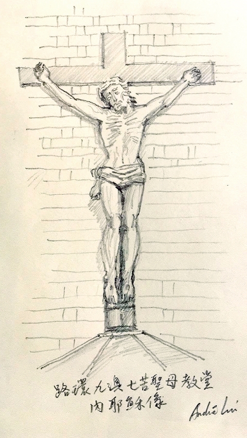 最後想介紹教堂內的苦難耶穌像。據夏剛志兒子說,該像是夏剛志的雕刻作品,其背後有一段鮮為人知的故事,筆者覺得帶有「寬恕」的含意。