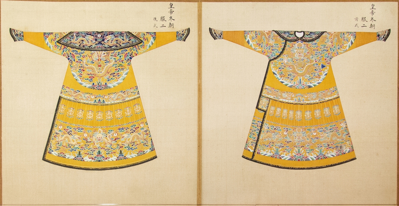 繪繡有章紋的禮服稱為「章服」,帝王以下,公卿諸侯品官大臣依等級可用九章、七章、五章、三章不等。章新稱,十二章紋是滿族統治者漢化以及民族融合的表現,清代服飾中完整的十二章紋最早見於乾隆。在歷朝歷代中,把十二章紋應用於服飾上並不罕見,其代表皇帝政治權威的至高無上,更寓意君主的各種美好高尚品德能福澤百姓,體現冠服制度與儒家思想的融合。