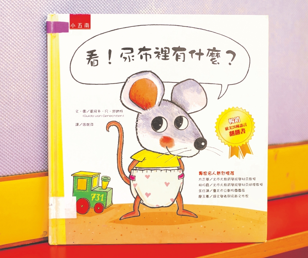 《看!尿布裡有什麼》鼓勵小朋友不要過度依賴尿布。我會遮住小動物的私隱部位,再翻開牠們的尿布,令小朋友忍俊不禁。