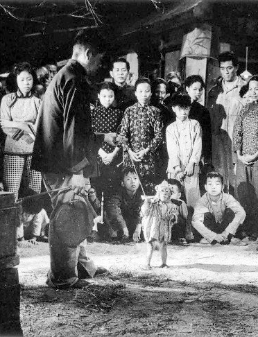 街頭賣藝中的猴戲(耍猴,註),早在唐朝已有出現,發源於今河南省新野縣。藝人訓練猴子模仿人類動作,表演時讓猴子穿上彩衣,做出打跟斗、鑽火圈、玩球、走鋼線、踩單車、騎羊騎狗、吸香煙等人類行為。