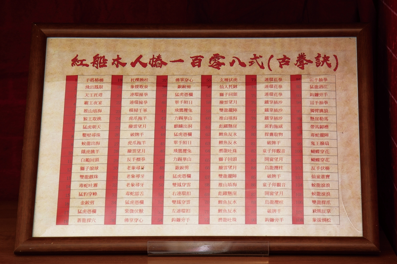 他說,紅船木人樁的一百零八式口訣,結合了中國歷史、人物典故、神話傳說、拳法招式而成,充滿中華傳統民俗文化特色。由於紅船木人樁源自粵劇南派武功,因此套路不乏港澳戲班常稱的「小念頭」(或「小練頭」)、「雲手拉山」及「腰馬合一」等名堂。