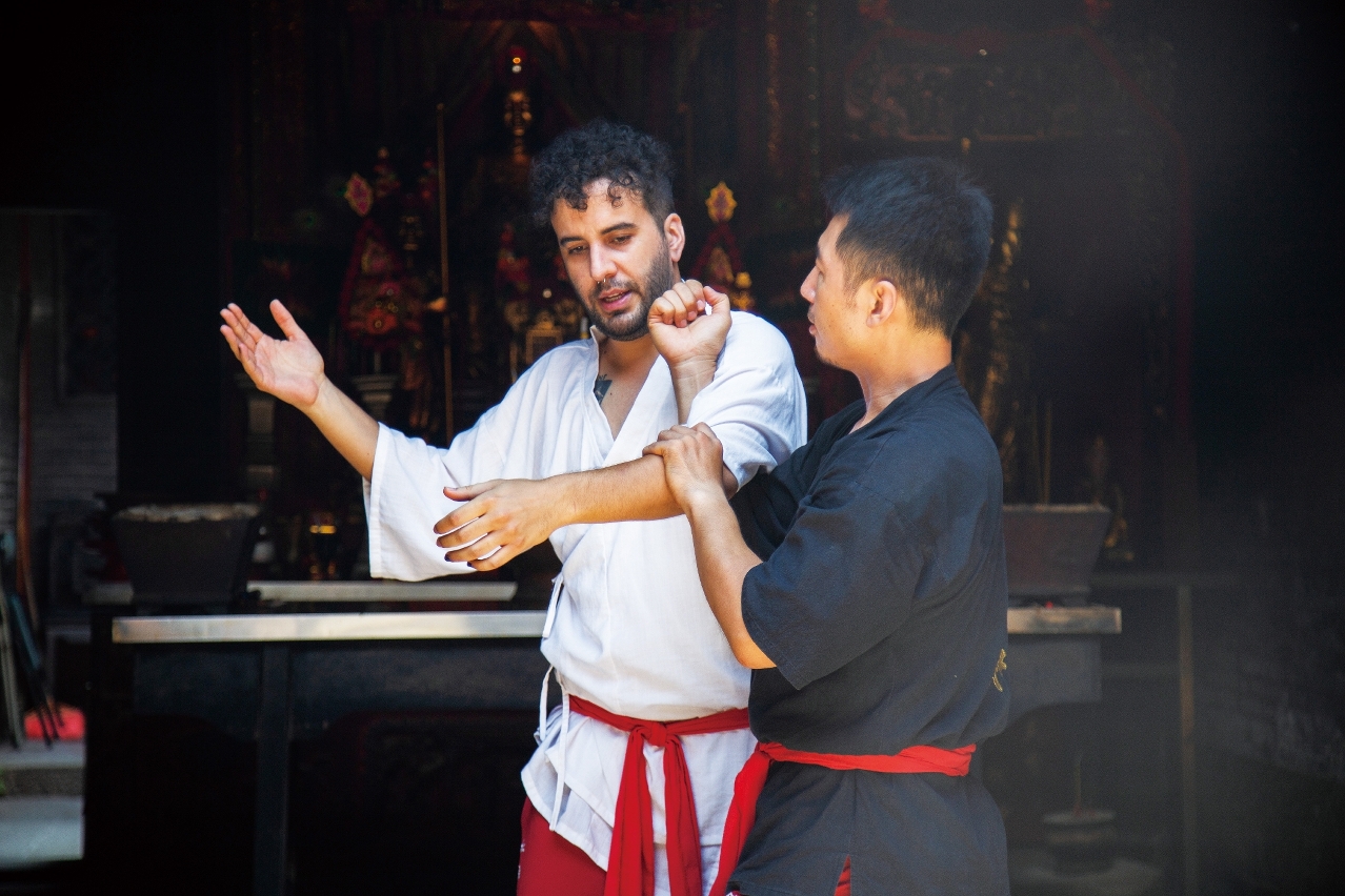 「『猛虎朝天』!在紅船木人樁的一百零八式中,我最喜歡這一個招式。」來自葡萄牙的João Picanço,對澳門的本土文化興趣濃厚,但找不到讓他全情投入的切入點,一年半前,在葡萄牙朋友的推薦下,他開始學習詠春拳及紅船木人樁。「這既可強身健體,亦讓我加深瞭解澳門的本土文化,兩全其美!」