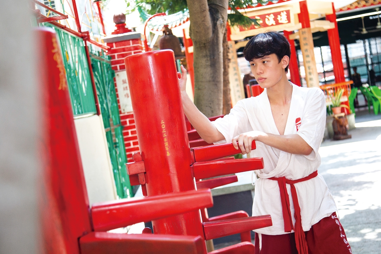曾練習柔道的鄭鈞煒,在機緣巧合下接觸了紅船木人樁,並產生興趣,於是開始有系統地學習。「在練習的過程中,我時常思考應如何施展或拆解招式,讓我有種數學解題的快感。」他說,在方寸之地鍛煉看似簡單,其實不然,即使已有一定體能基礎的他,開始練習時仍感到吃力。不過,努力並沒有白費,現在的他,在精神和體能上都有所進步。