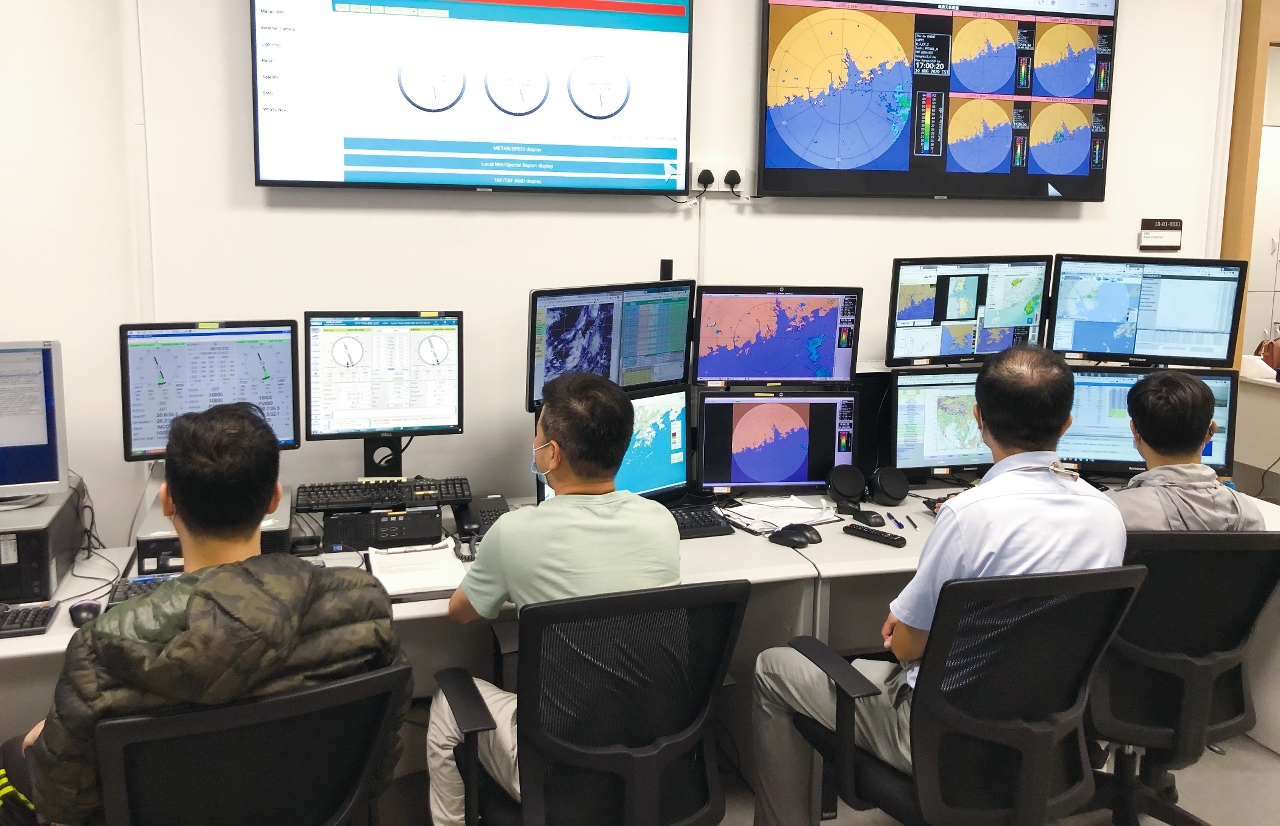 「航空氣象中心的工作,總括而言就是守護澳門機場『方圓10公里的天空』內的航空安全。」他解釋,氣象局的工作涵蓋多個領域,為全澳市民提供全面的氣象服務,航空氣象中心是氣象局的一個專職部門,專責密切監察機場範圍內的氣象變化,為航空公司、機場的營運單位、空管人員及旅客提供24小時氣象服務。「不論天氣情況如何,我們都要無間斷地每半小時製作例行天氣報告、每6小時一次的機場天氣預報,以及為每一架離澳航班提供飛行氣象文件;而每當遇上明顯的天氣變化,更需要隨時發佈特殊天氣報告和更新天氣預報。」