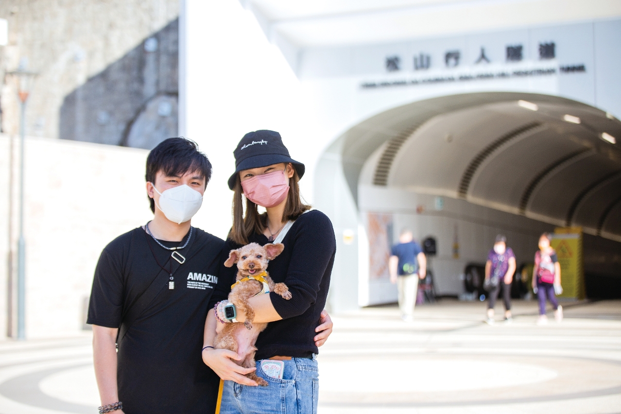 下午時分的松山行人隧道,有不少市民帶着寵物來往。潘女士說,以往到水塘遛狗都要開車,「對於小型犬隻來說,從高士德繞行到水塘一帶,路程較長,未必能夠撐得住。現在行人隧道啟用,就可以步行前往,方便了一眾毛孩家長。」