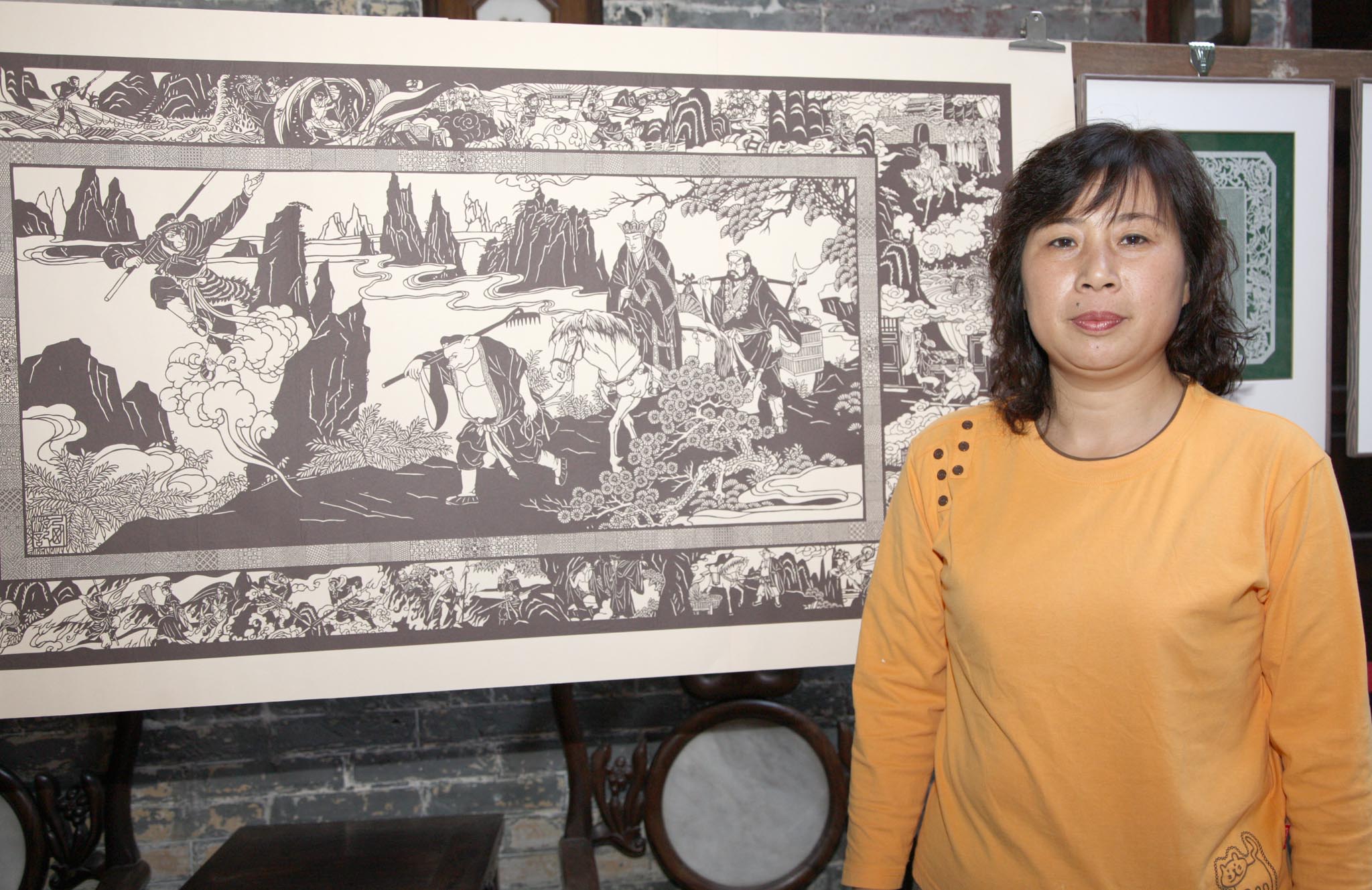 與黃楊木雕作品同時來澳的浙江樂清細紋刻紙堪稱剪紙一絶,作品以刻代剪,纖細巧麗,被譽為“剪紙微雕”,起源於稱為“龍船花”的一種傳統大型龍燈上的剪紙花樣的裝飾,距今已有七百多年歷史。來澳藝術家金錢妹表示,樂清細紋刻紙有別於其他地區的剪紙特色,作品富含多種傳統民間特色的花紋如金錢紋、魚鱗紋等,且都能在幾厘米的方格上得到細緻而豐富的展現,製作技藝要求極高,圖案細如髮絲,令人讚嘆。金錢妹從事刻紙工藝二十多年,現為中國剪紙藝委會特級技師,常獲邀赴各地展現精湛技藝,是次帶來的作品《紅樓夢》被浙江省美術館收藏,其他刻紙作品亦屢獲大獎。