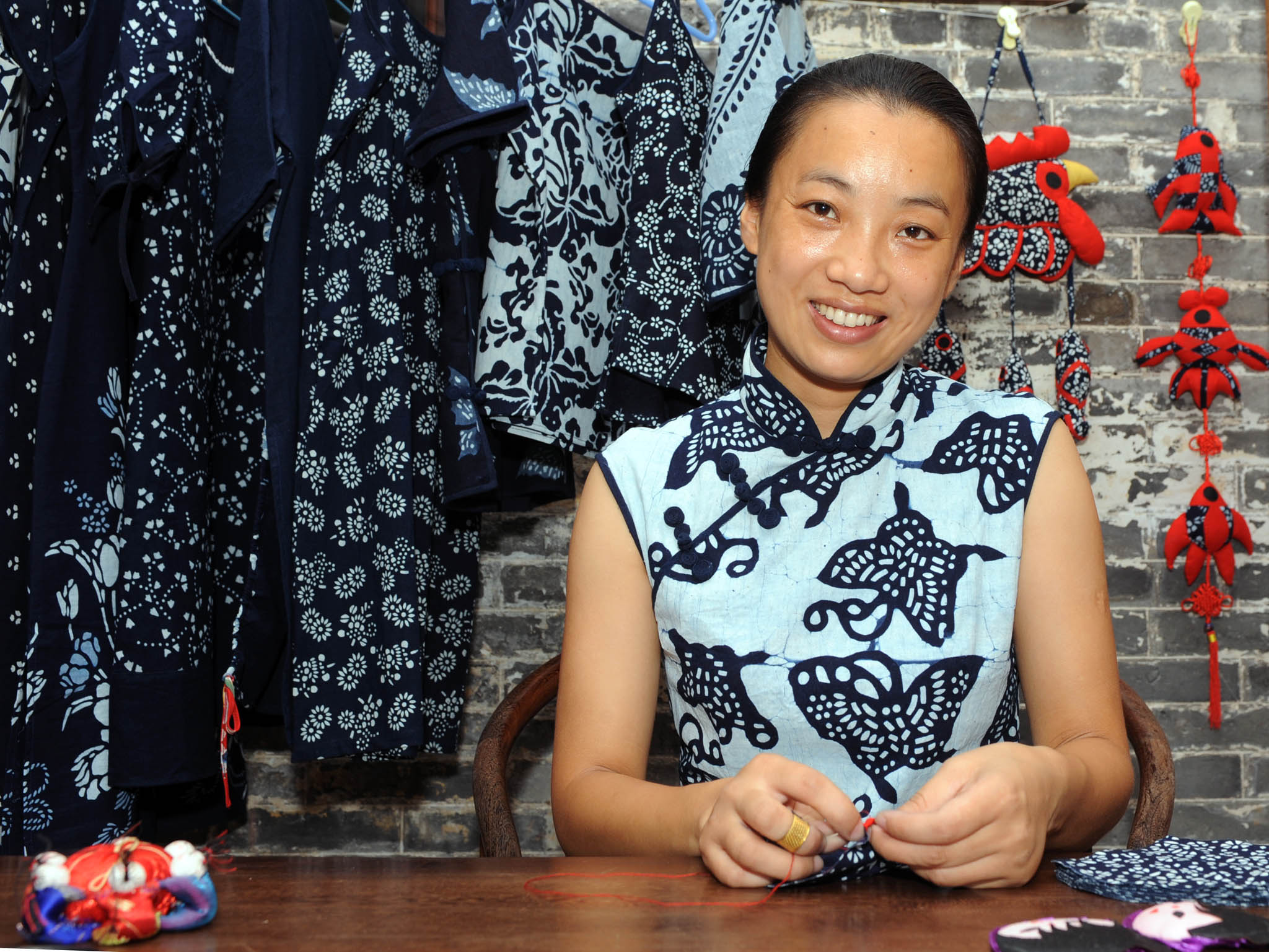 藍印花布簡單、原始的藍白兩色,創造出一個淳樸自然、千變萬化、絢麗多姿的藝術世界。藍印花布又稱“藥斑布”,“拷花布”,是以板籃根等植物中提取天然靛籃作為天然染料,具有耐洗耐曬、色性穩定等特點,使用廣泛,不僅成為多姿多彩的衣料,更可製成頭巾、桌布、床單和飾品,與百姓日常生活緊密地聯系在一起。藍印花布由於具有濃厚的鄉土味,反映深厚的文化和藝術沉積,因此特別受外國遊客的青睞,遠銷海內外。
