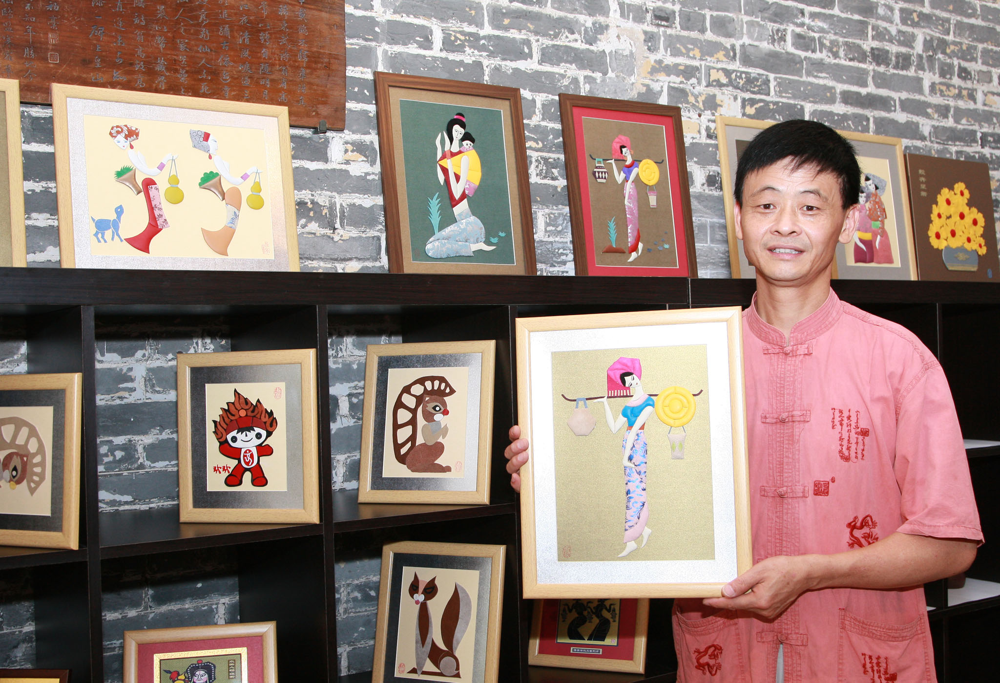 • 徐榮帶來獲獎皮貼畫作品《土家姑娘》