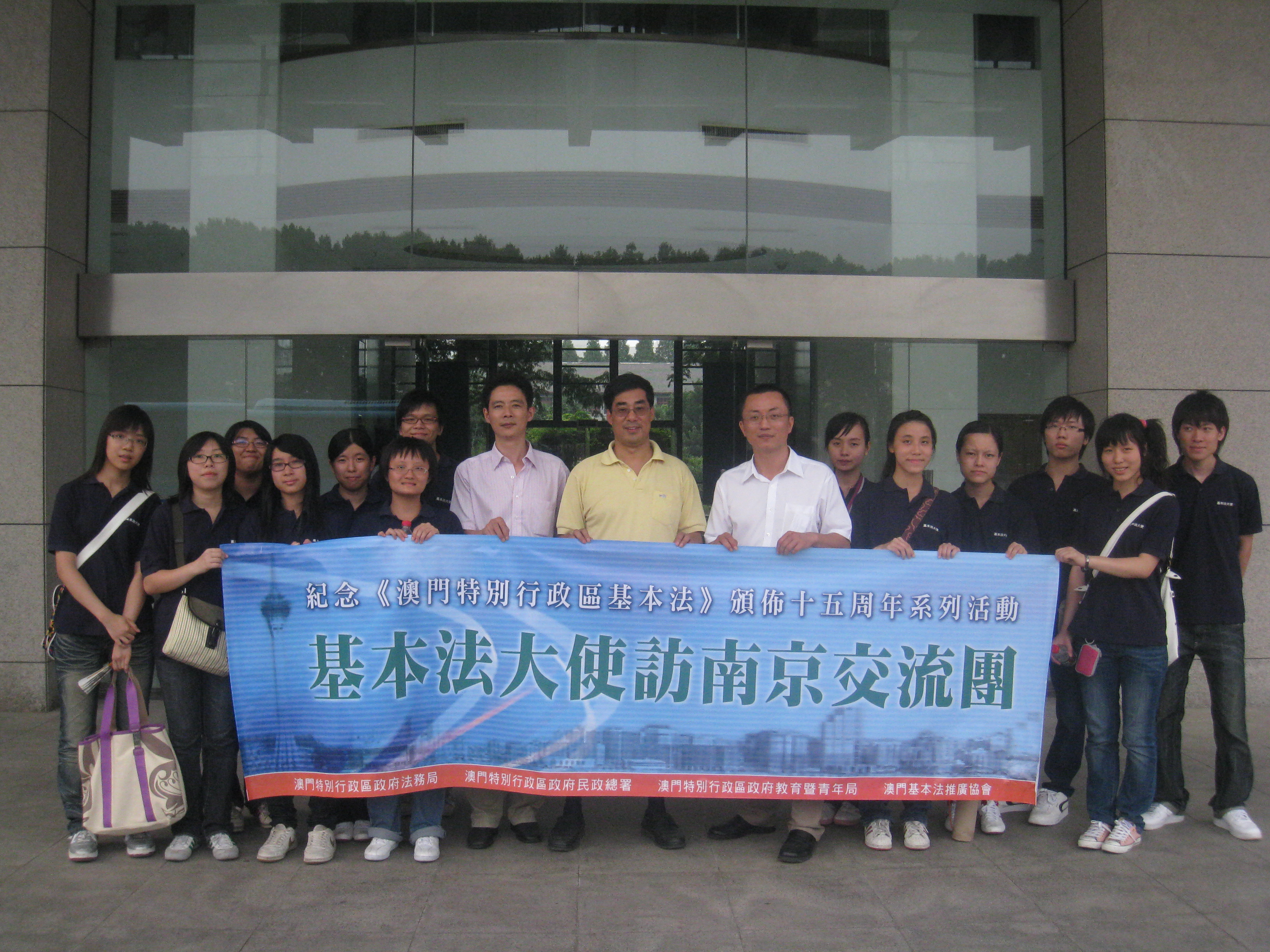 此次基本法大使南京交流活動是紀念《澳門基本法》頒佈十五周年的系列活動之一,同樣是由法務局、教育暨青年局、民政總署及澳門基本法推廣協會聯合主辦,旨在透過參觀訪問等活動,讓本澳青少年從不同角度體會《基本法》的落實,並使他們對內地法制有進一步的認識。
