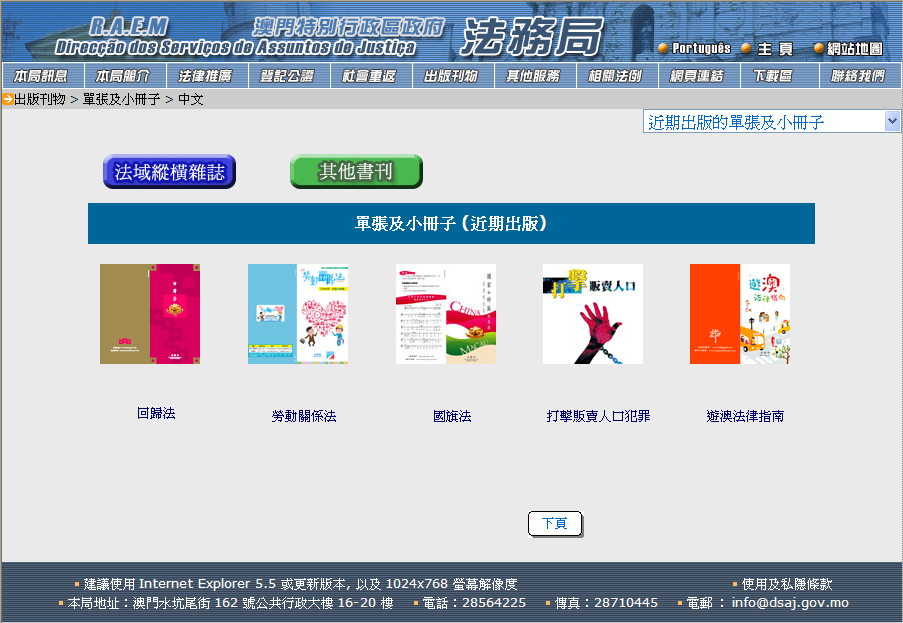 另外,為方便外籍人士查閱有關單張內容,普法刊物網上查閱服務同時設葡文版和英文版,以照顧外籍人士了解本澳相關法例的需要。