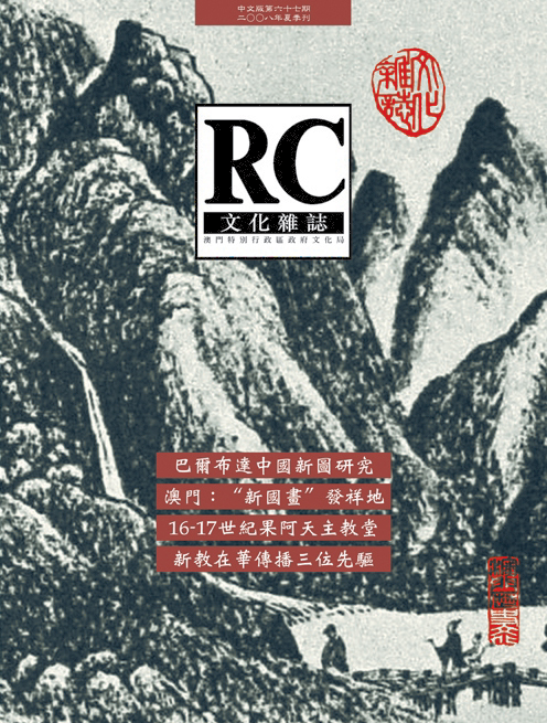 《文化雜誌》是專門研究澳門歷史文化的大型學術季刊,本期在“文化”欄目刊出的論文有林廣志〈清代澳門華商的文化堅守與風俗涵化〉;胡光華〈澳門--中國“新國畫”的發祥地〉;葉瑩、莫小也〈中國現代美術教育的先驅鄭錦〉;何偉傑〈香港意大利社群初探〉。“歷史”欄目則刊出黃時鑒〈巴爾布達〈中國新圖〉的刊本、圖形和內容〉;顧衛民〈16-17世紀印度果阿的天主教堂〉;劉小珊〈西方傳教士陸若漢與朝鮮燕行使交往考述〉;陳大同〈利瑪竇在肇慶的遭遇及其啟示〉;博克斯〈新教在華傳播的三位先驅〉;洛瑞羅〈澳門、馬尼拉與荷蘭人〉;韋恩〈17世紀荷蘭在南中國海的貿易與航運〉;古爾〈反映歐亞關係的商人外交使團〉。