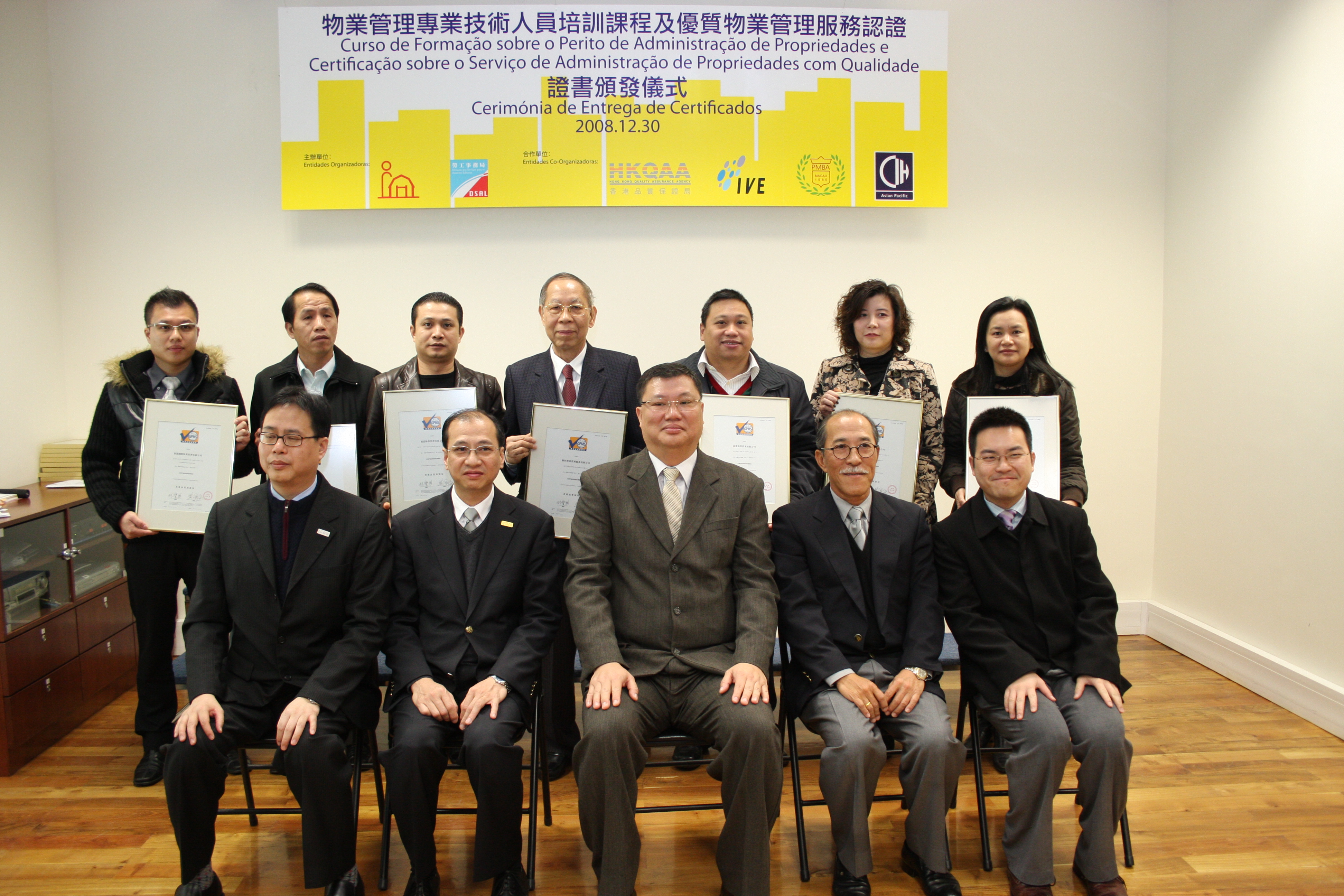 為推動本澳物業管理服務走向專業化並提高行業水平,以配合即將推出之從事樓宇管理業務及管理服務人員職業的法律制度的推行,房屋局和勞工事務局再度合作開辦了「第三期物業管理專業技術人員培訓課程」, 並邀請到香港職業訓練局香港專業教育學院(摩理臣山)、英國特許房屋經理學會亞太分會及澳門物業管理業商會度身設計本課程。此外,房屋局亦邀得香港品質保證局協助推行「優質物業管理服務認證計劃」,以專業方法對本澳物業管理公司之服務內容及能力進行認證。上述二項之證書頒發儀式於本年12月30日假房屋局大樓六樓舉行。