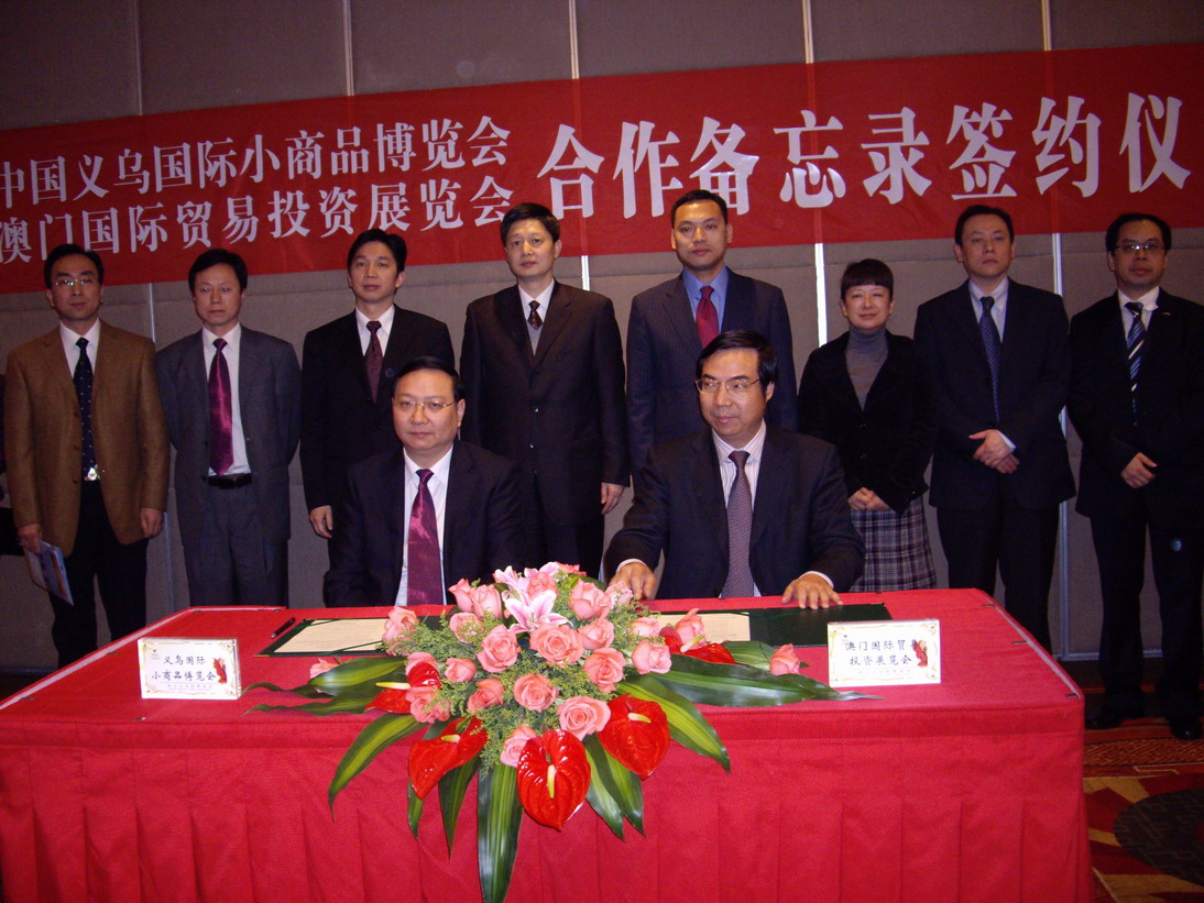 會談後,義烏市人民政府季金甫副市長與MIF組織委員會李志忠主任作代表簽署了「義博會」和「MIF」合作備忘錄。其主要內容包括,澳門貿促局將會組經貿代表參加每年的「義博會」,而浙江省亦會組團參加於每年10月於澳門舉辦的「MIF」;合作制定及開展展會推廣計劃;支持對方開展展會推介活動;實現展會網站的鏈結、展會資訊和資料的交流等多項具體合作事宜。