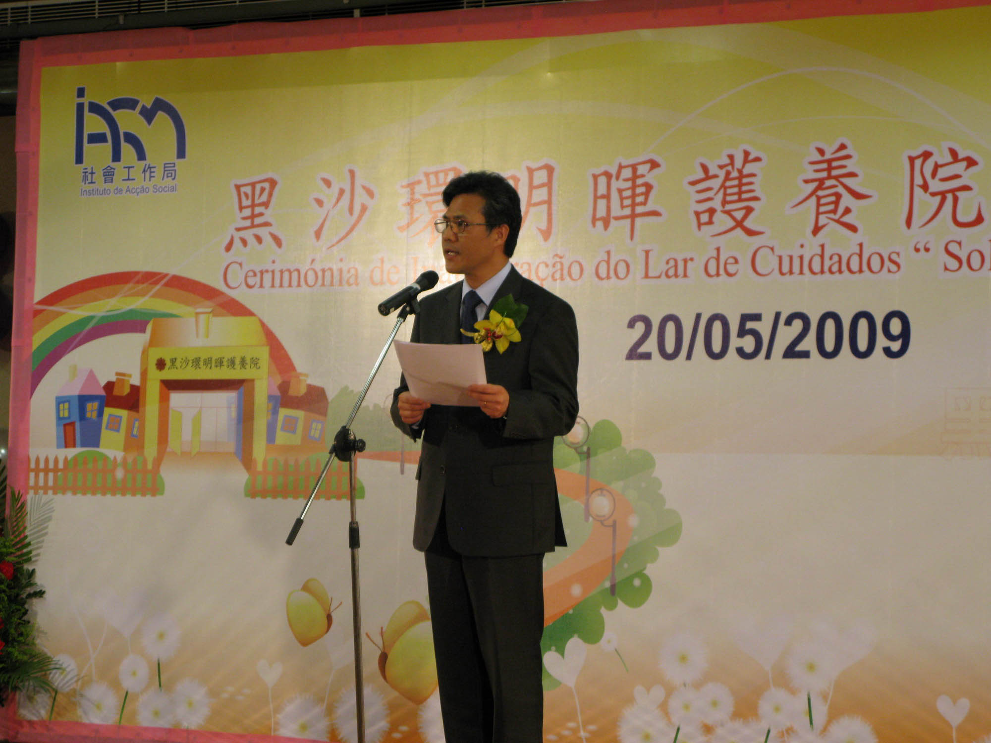 社會工作局局長葉炳權在致辭時感謝負責管理和營運黑沙環明暉護養院的澳門明愛,特別是護養院全體服務人員,在院舍籌設及運作過程中付出的巨大心力和奉獻。他勉勵院舍全體服務人員,秉持以人為本的服務精神,為長者提供優質高效的持續照顧服務,相信透過特區政府和澳門明愛的共同努力,黑沙環明暉護養院在未來的日子之中,會成為澳門特區長期照顧服務的其中一個典範。