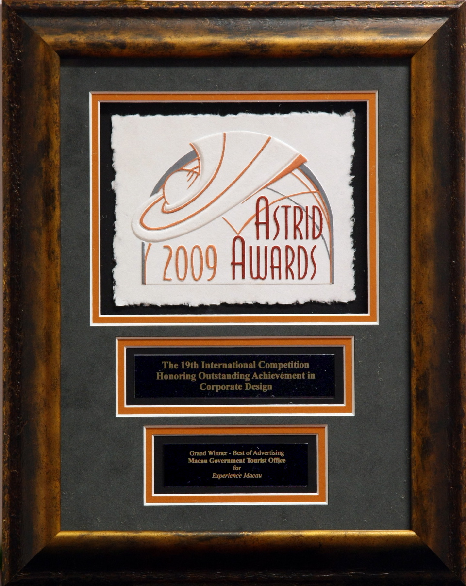 2009年5月,在紐約的第19屆ASTRID年度大獎賽(19th Annual Astrid Awards 2009)旅遊局再度藉著"感受澳門"宣傳印刷品奪得金獎。與此同時,澳門圖片集獲得數碼光碟榮譽獎。