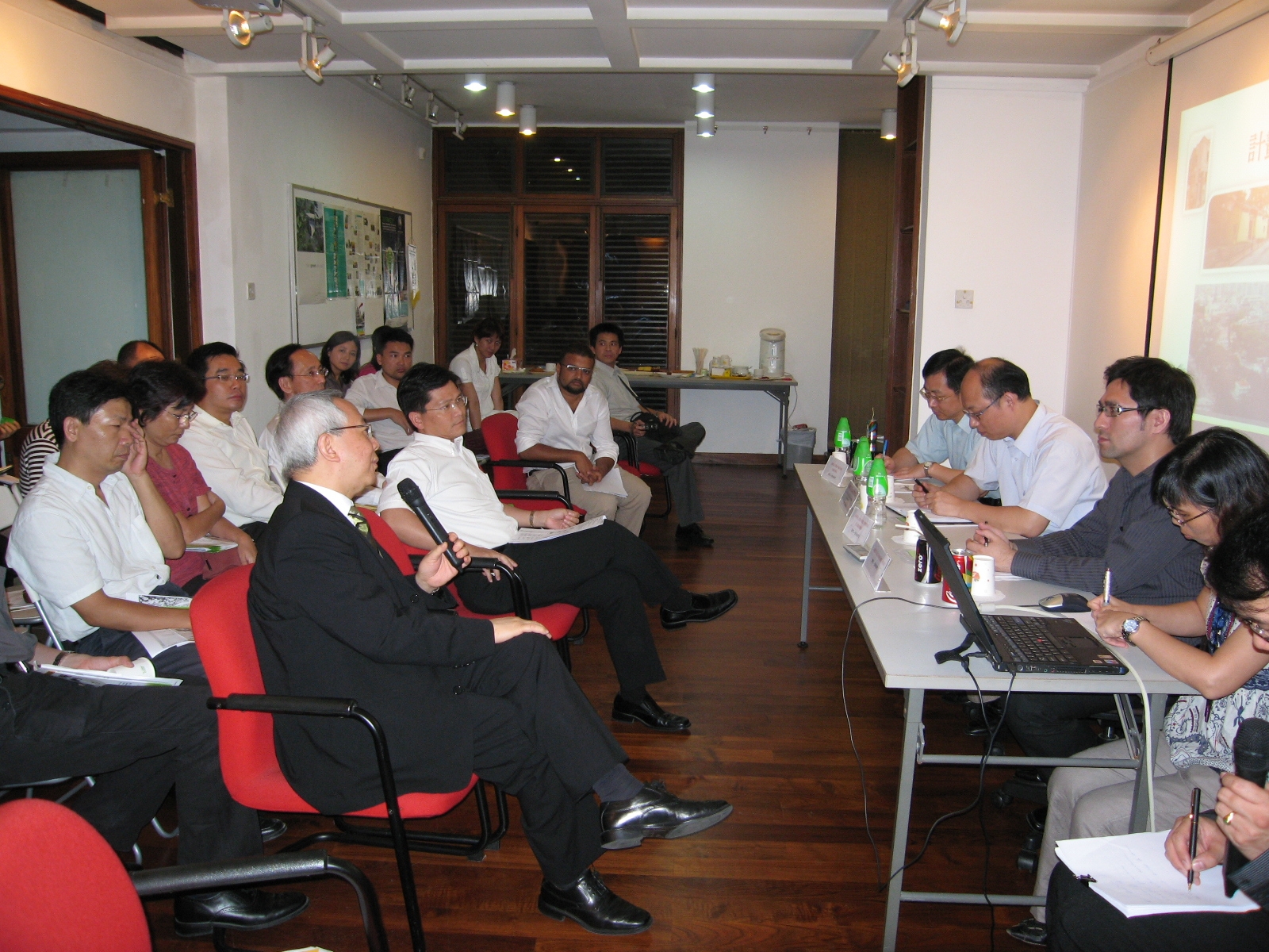另一方面,為聽取專業團體的意見,工務局也和建築師協會舉行了座談,向該會理事長梁頌衍、會員大會主席黃如楷、資深會員主席馬若龍以及二十多名會員介紹「氹仔舊城區優化計劃概念2009」「優化路環舊市區可行性研究」。
