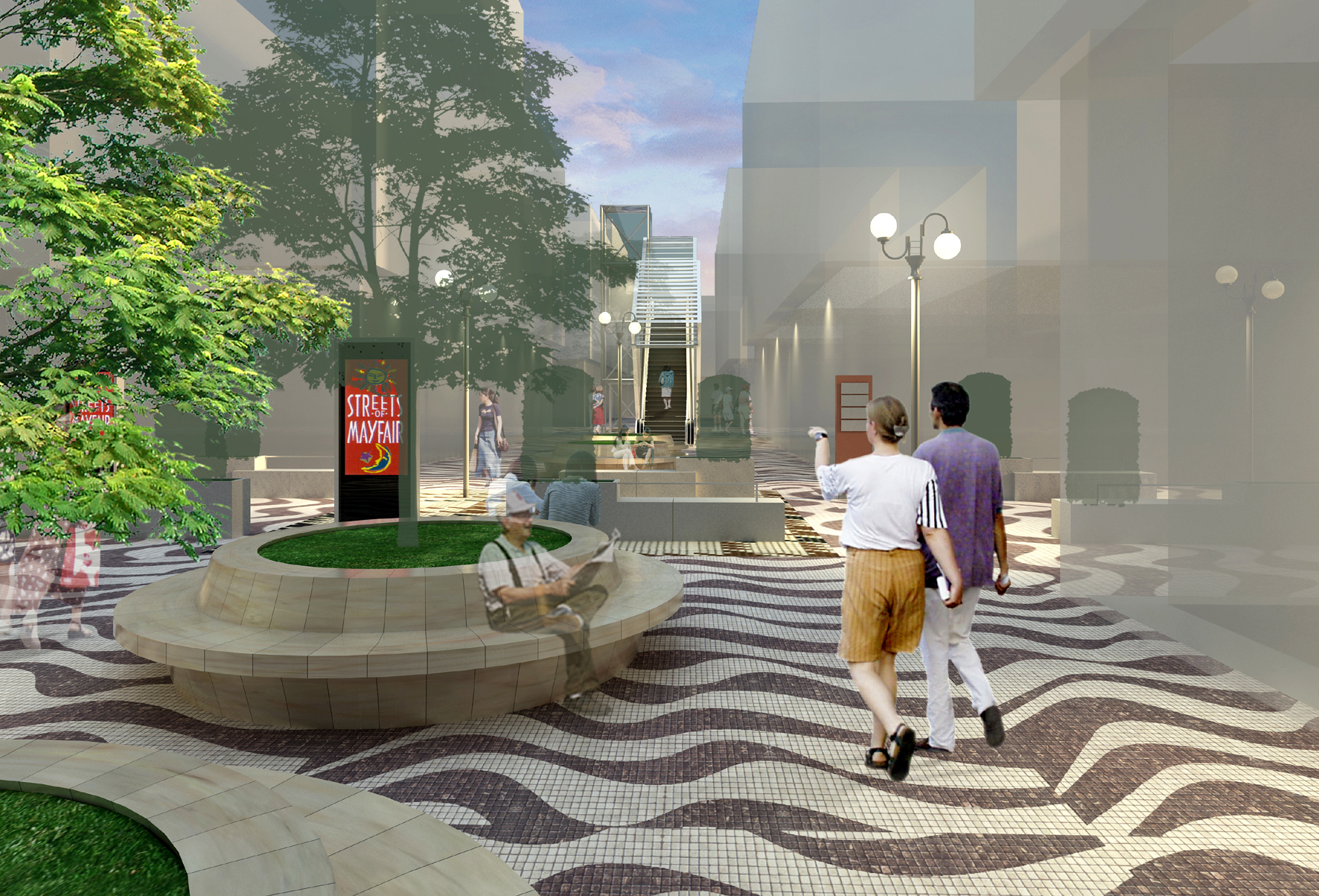 該組方案建議擴寬近塔石廣場一段的行人路;保留二馬路部份泊車位以及保持行車;計劃重建現有的兩條及新增一條行人天橋,接駁街區內多條街道的步行系統。