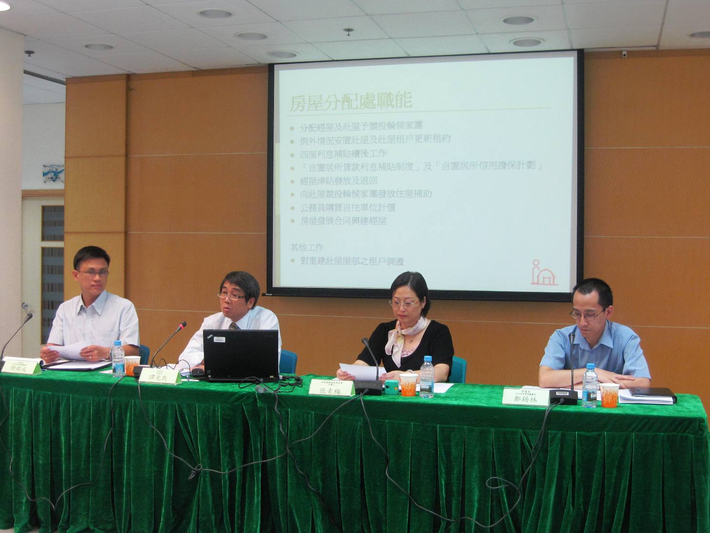 房屋局向分區社區服務諮詢委員會舉行職能簡介會,社諮會委員亦就當局的房屋政策以及大廈滲漏水投訴處理等問題提出意見,房屋局在回應時表示,政府對公共房屋政策已有短、中、長期的措施,而對於大廈滲漏水投訴問題,當局會做好協調支援工作,亦呼籲小業能自律合作,切勿以一己之私,對鄰居造成困擾及負上民事責任。