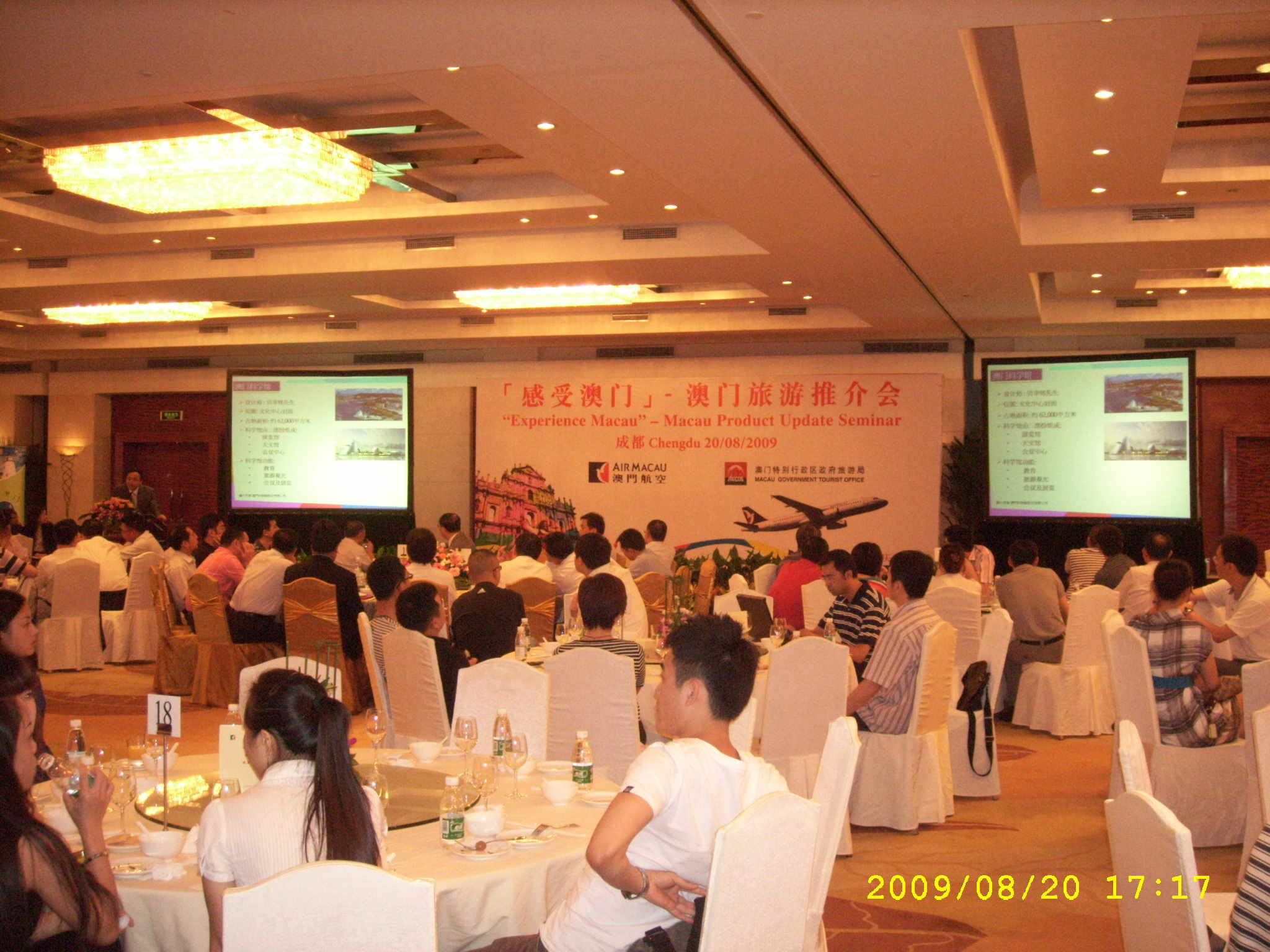 “感受澳門!”旅遊推介會邀請近二百名成都及周邊地區的旅遊業界及媒體代表參加。中共四川省委統戰部副部長、四川省工商聯合會黨組書記、常務副主席鐘佳霖先生、四川省旅遊局副局長苗玉硯先生以及口岸辦、成都市旅遊局等主管單位的代表出席了此次活動。
