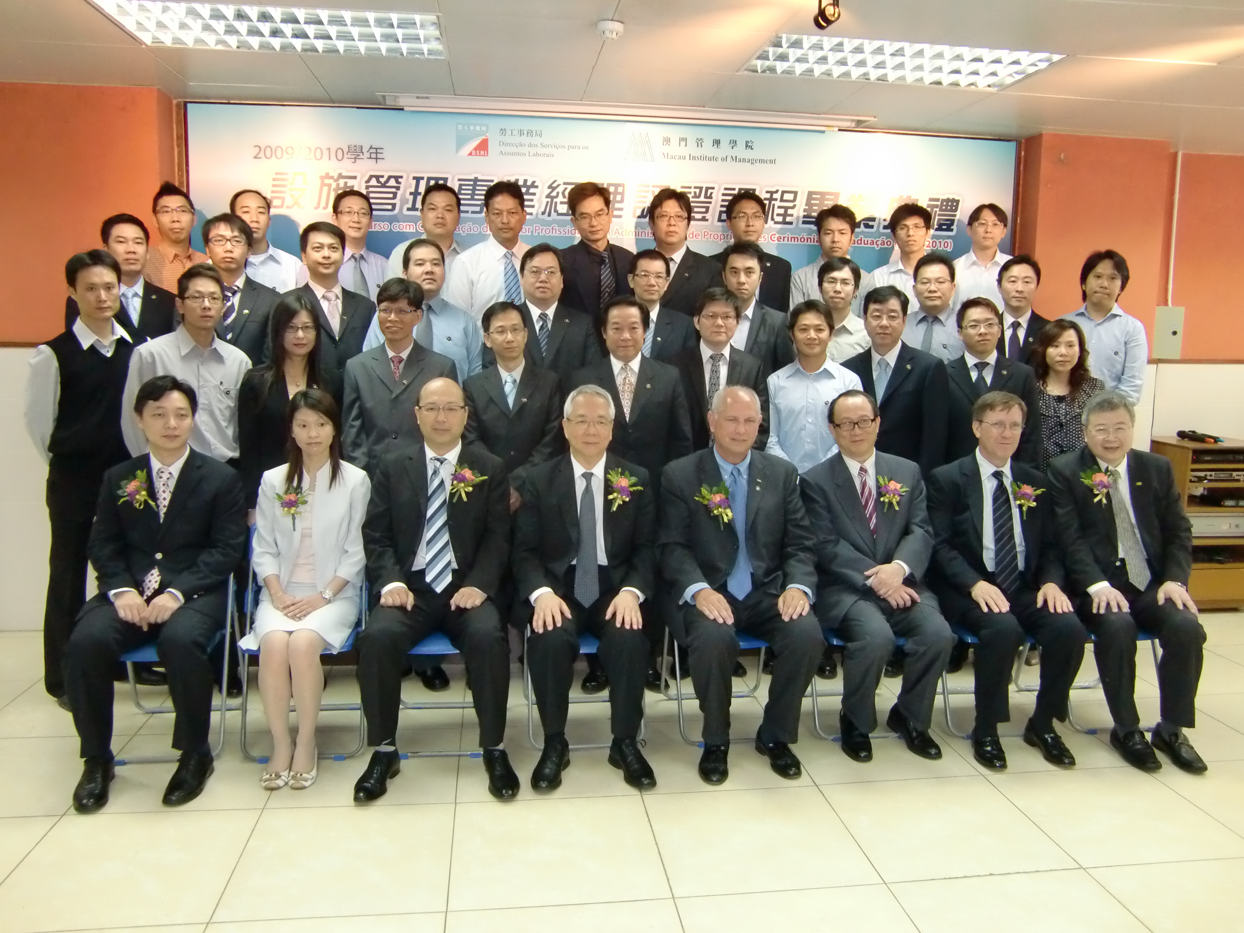 隨著大型酒店及娛樂設施的相繼落成,以及輕軌系統及公共設施擴建計劃的推出,大型企業及公共部門對設施管理人員需求日益提升。為此,勞工事務局與澳門管理學院於2007年9月開始合辦「設施管理專業經理認證課程」,期望透過有關課程,一方面為行業引入具前瞻性的新思維,推動科學化及現代化的設施及設備管理,亦可為從事設施管理相關範疇之人士提供了專業培訓及考取相關國際認證的機會,從而提升就業競爭力。課程至今已開辦了24期,提供培訓名額841個,共有118人已完成全數四個科目課程及考獲相關專業資格。而合辦機構昨日假勞工事務局職業培訓廳為第二批畢業學員舉行畢業典禮。