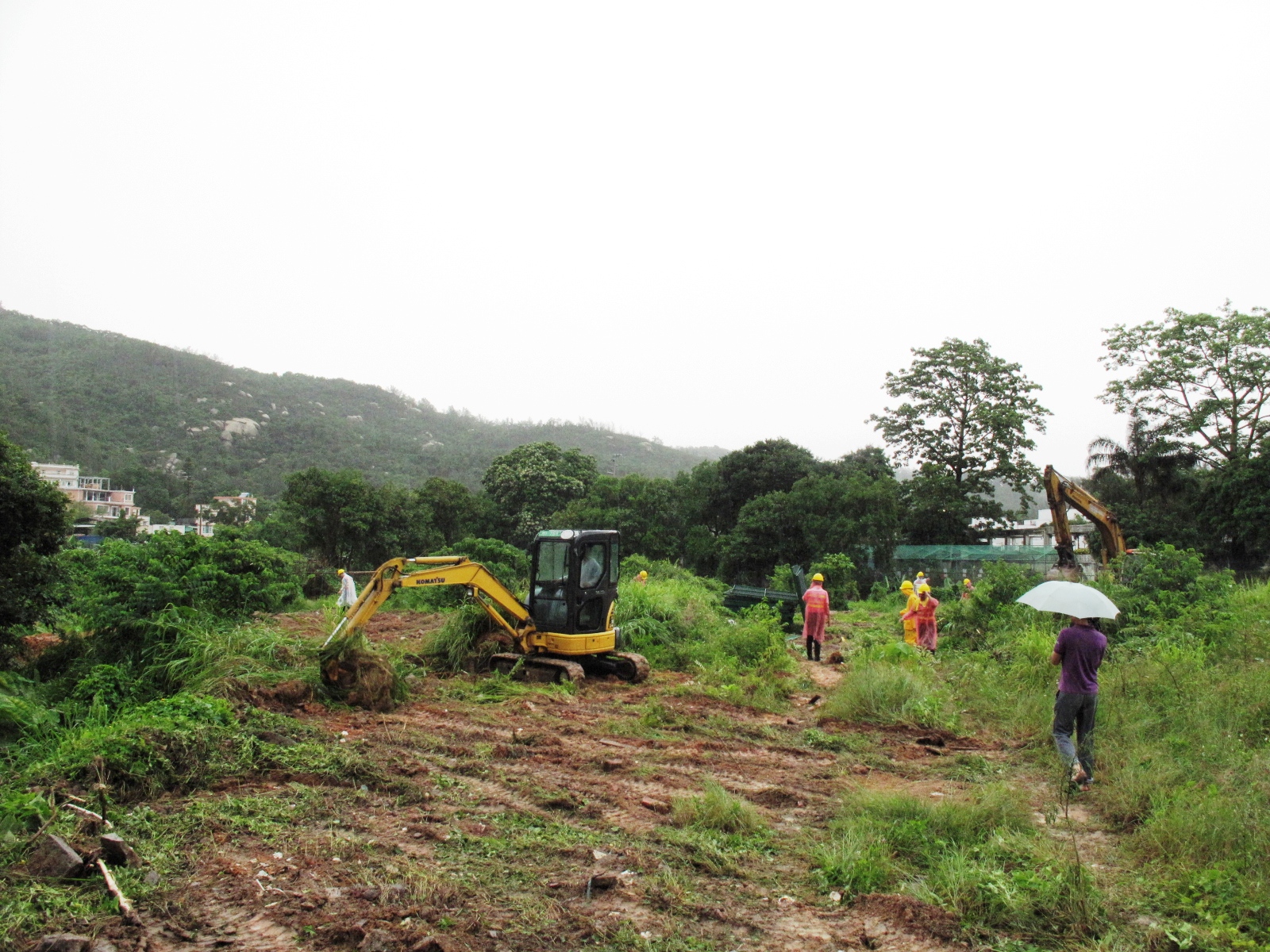 今日清遷的佔地位於路環賈梅士大馬路旁,佔地面積約3,800平方米,該地段是政府人員在去年例行巡查時發現該處原有地貌被改變。經證實屬特區政府土地後,土地工務運輸局隨即刊登預審告示。佔用人獲通知後,已立即停止破壞的行為,並按政府要求,逐步遷走佔地上的工程建築材料以及工程機械等。
