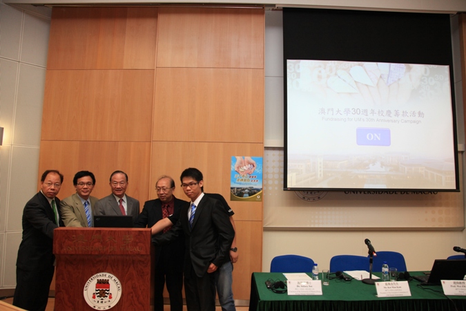 澳大於今天(六月二十八日)啟動三十週年校慶籌款活動,並舉行新聞發佈會,公佈未來一年展開的籌款計劃詳情。啟動儀式由校董會主席謝志偉博士、澳大校長趙偉教授、澳大校友會理事長葛萬金先生、澳大(香港)校友會主席施德芝博士、學生會代理事長裴先達,以及澳大研究生會理事長劉維剛主持。